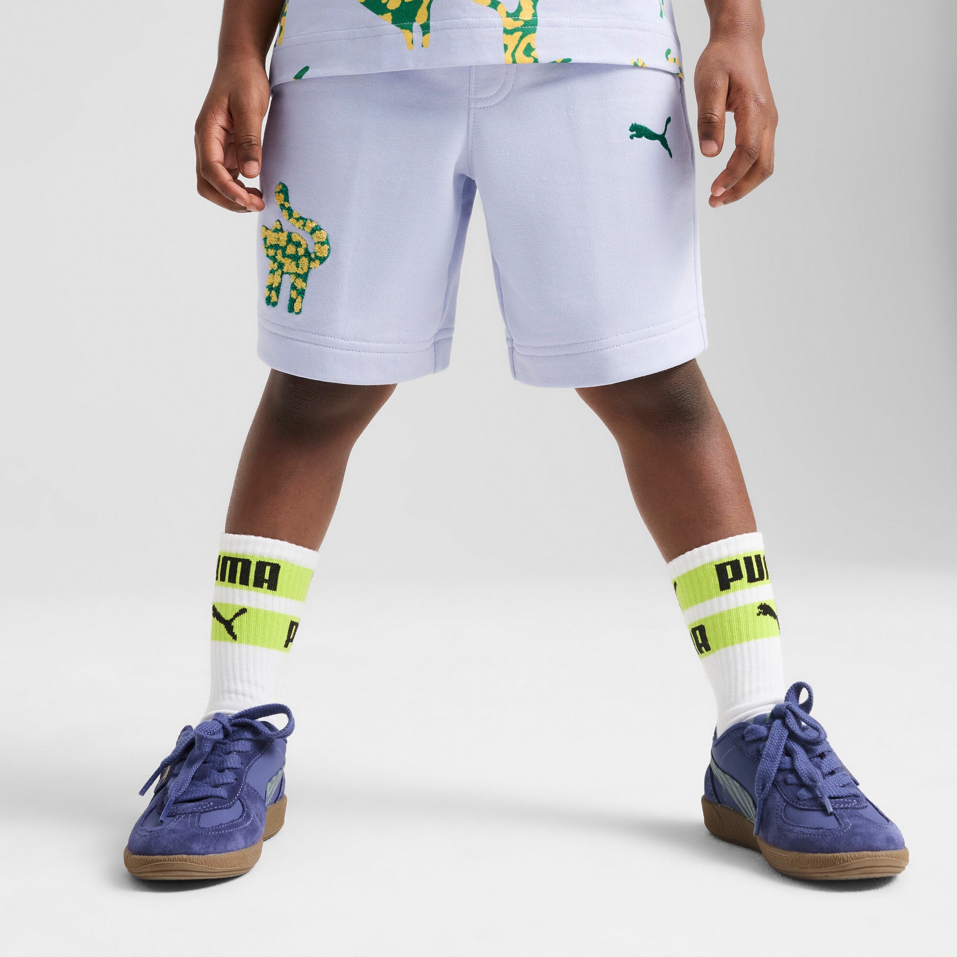 Get ready for action with PUMA's vibrant shorts. Featuring a graphic rubber print and an elastic waistband with an internal drawcord for a personalised fit. Designed for kids who love to move and express themselves.