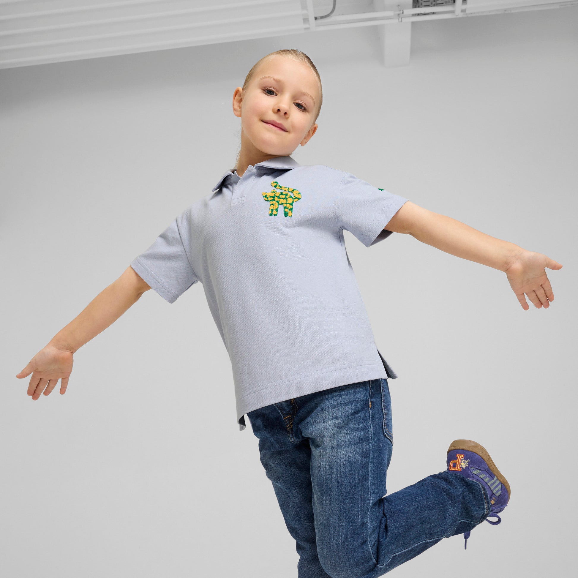Little ones can show off their inner trendsetter with this PUMA polo featuring a cute embroidered cat graphic on the chest. With short sleeves and button placket it's the perfect blend of comfort, style and versatility.