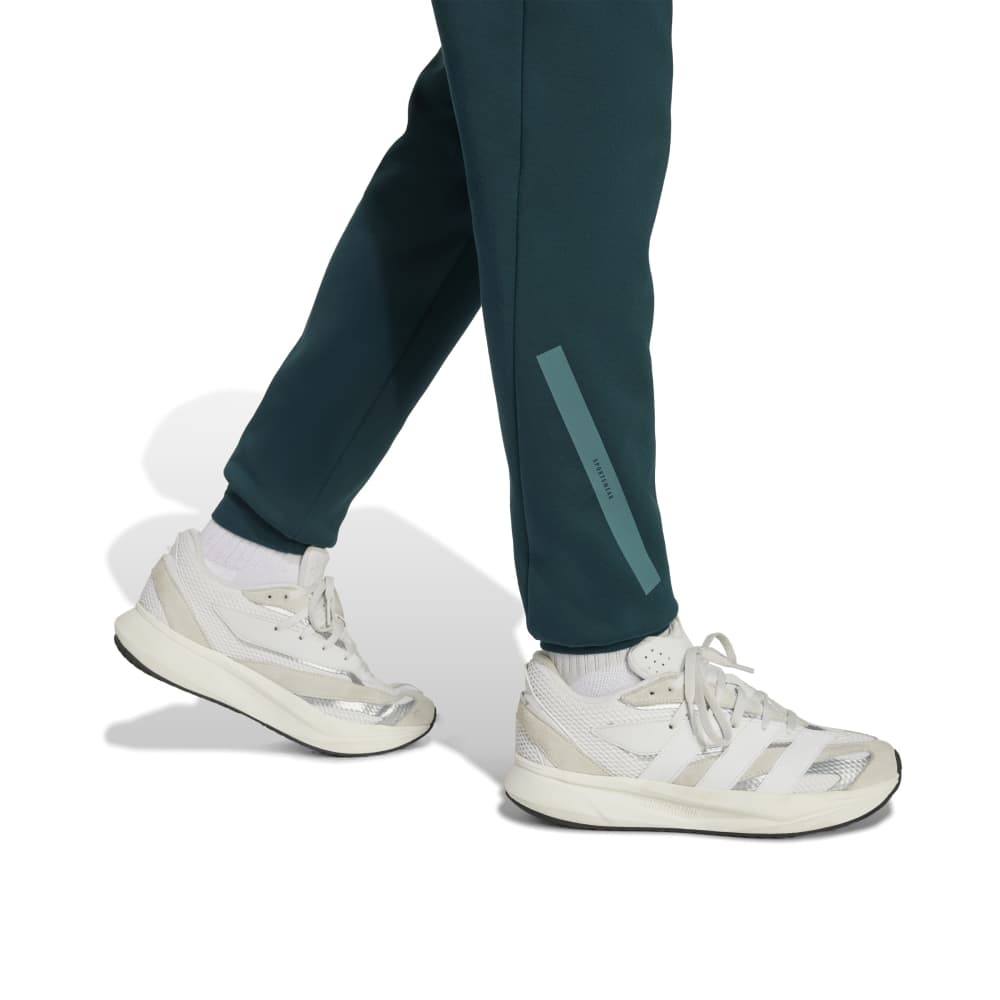 • Experience the comfort of belonging with the adidas Z.N.E. Pant. Made with a blend of 57% recycled Polyethylene Terephthalate and 43% Better Cotton, these unisex pants are designed to connect, perform, and inspire. The 330g doubleknit spacer fabric, constructed with three layers, blocks out the cold and keeps you warm and dry. The matte rubber print three-bar logo and tech-inspired drawcords and zippers add a touch of modern style. Sport is where we feel zero negative energy, and these pants embody that ethos.