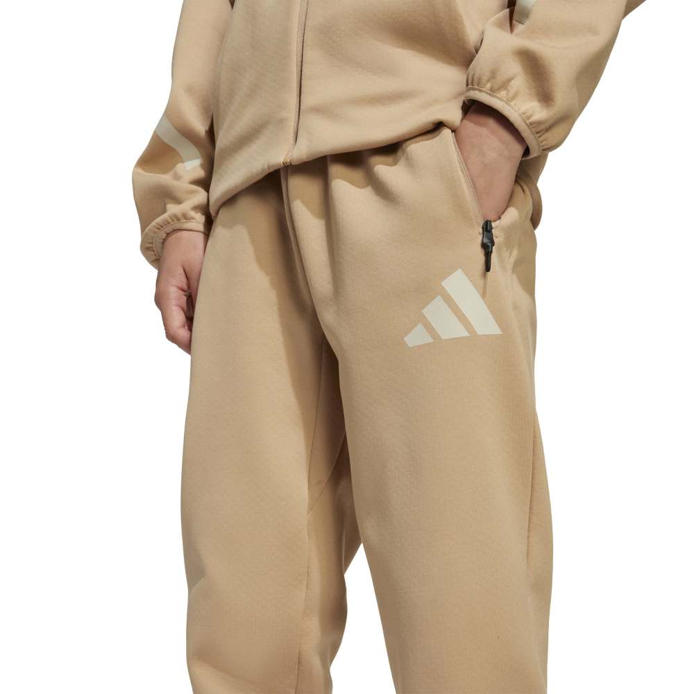• Experience the comfort of belonging with the adidas Z.N.E. Pant. Made with a blend of 57% recycled Polyethylene Terephthalate and 43% Better Cotton, these unisex pants are designed to connect, perform, and inspire. The 330g doubleknit spacer fabric, constructed with three layers, blocks out the cold and keeps you warm and dry. The matte rubber print three-bar logo and tech-inspired drawcords and zippers add a touch of modern style. Sport is where we feel zero negative energy, and these pants embody that ethos.