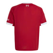 - Welcome home, Reds. Liverpool FC and adidas have always been the perfect team. Kicking off their third spell together, this juniors' home jersey brings some real mid-'00s football vibes with a clean, crisp look framed by white piping. Through dreams and songs, moisture-managing AEROREADY keeps fans comfortable, while a Liver Bird on the chest can't fail to bring hope to your heart.