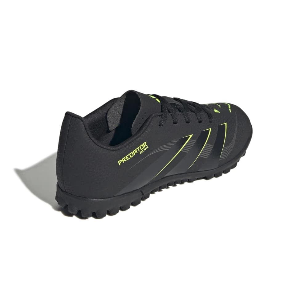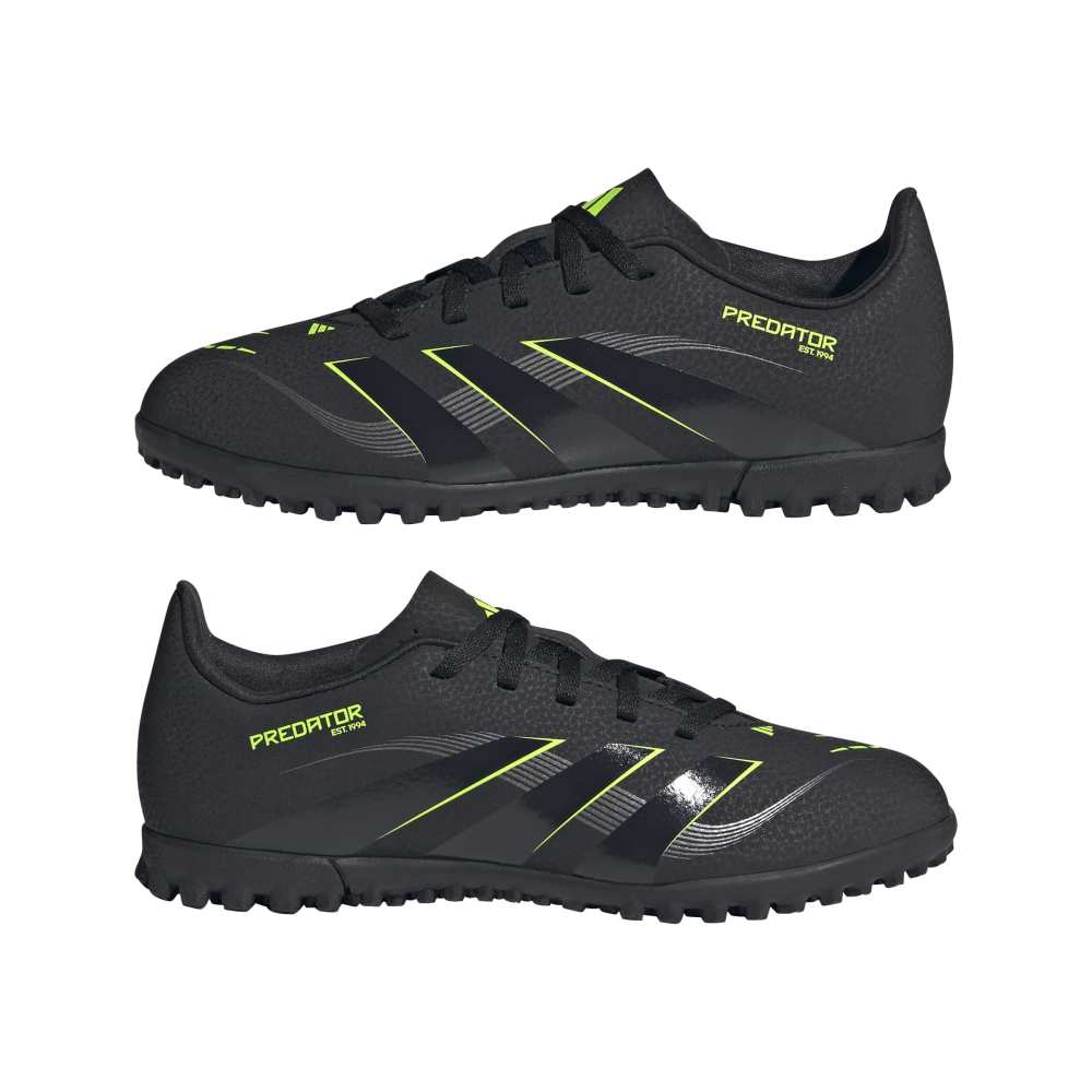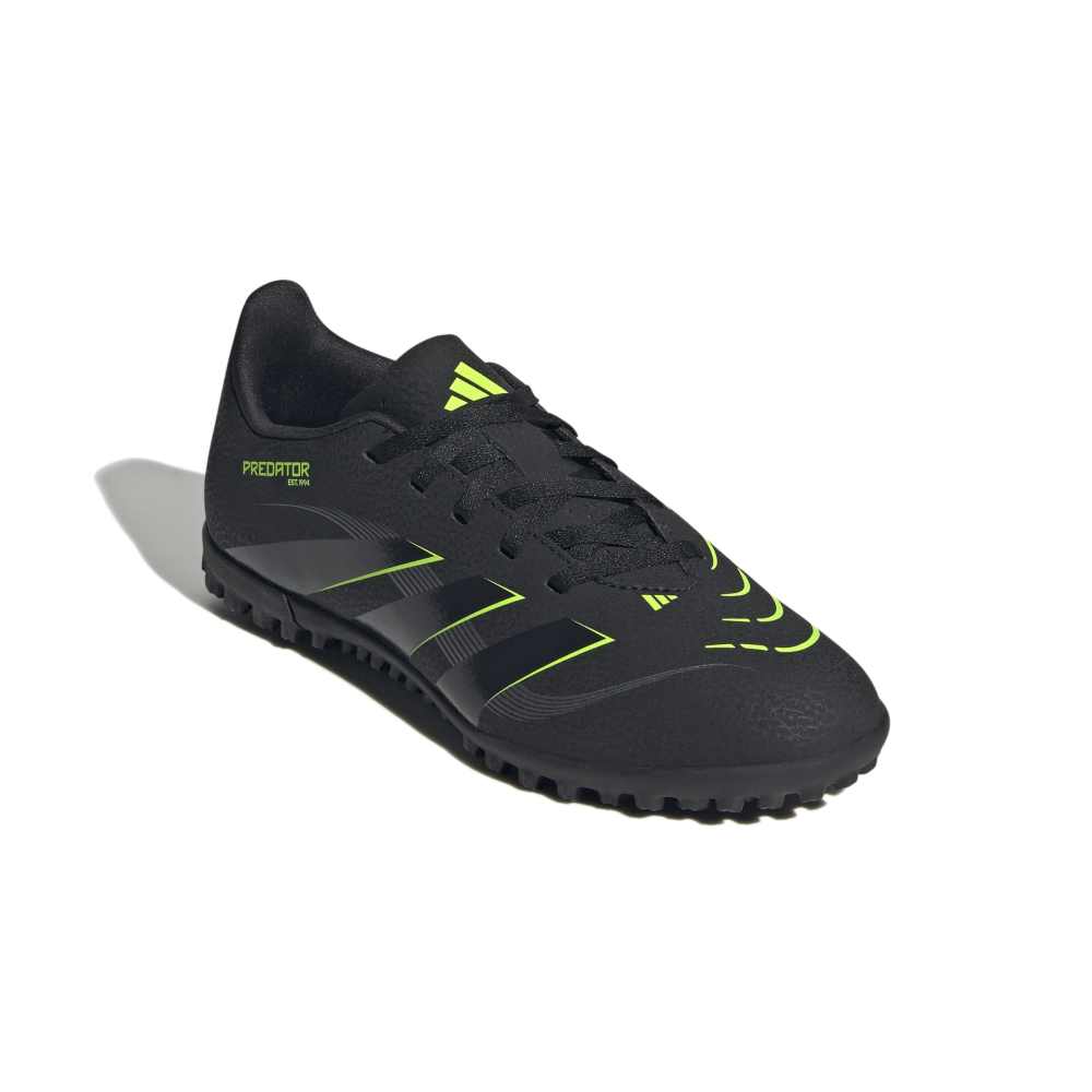 • Discover the difference between aiming to score and knowing you will with adidas Predator boots that are crafted for goals. These juniors' Club football boots have a synthetic upper coated with a grippy Strikeprint texture for better ball control. Their lug rubber outsole is designed to get you into prime shooting positions on artificial turf courts.