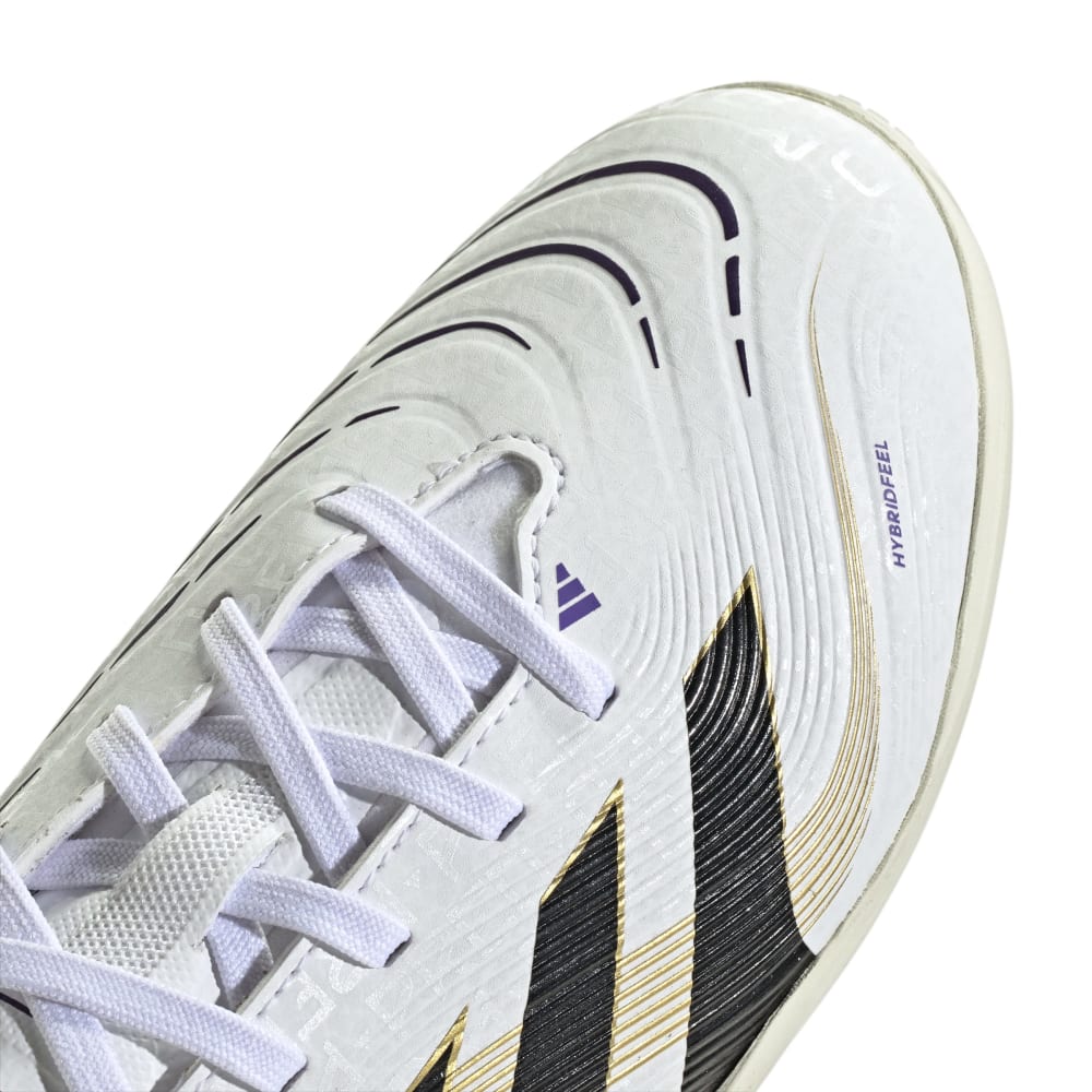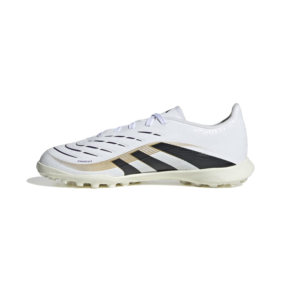 • Discover the difference between aiming to score and knowing you will with adidas Predator boots that are crafted for goals. These juniors' League boots have a Hybridfeel upper that incorporates an all-over 3D texture and grippy Strikescale fins to help you manipulate the football during strikes. A lug rubber outsole keeps you stable on artificial turf pitches.