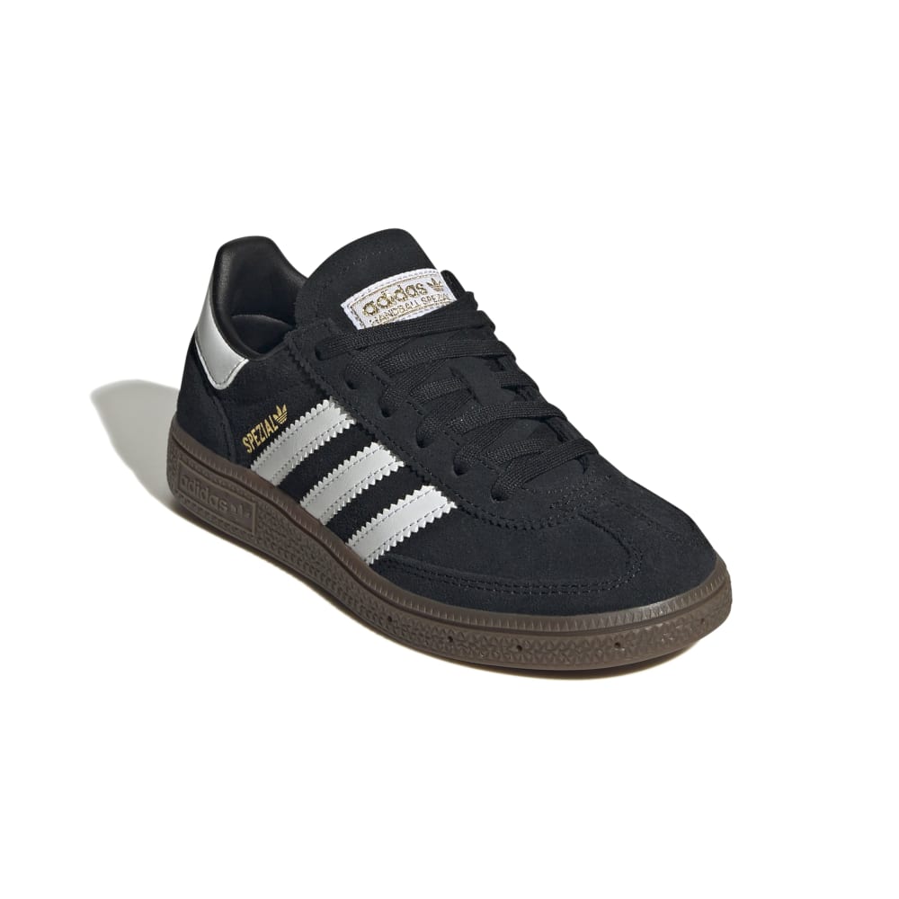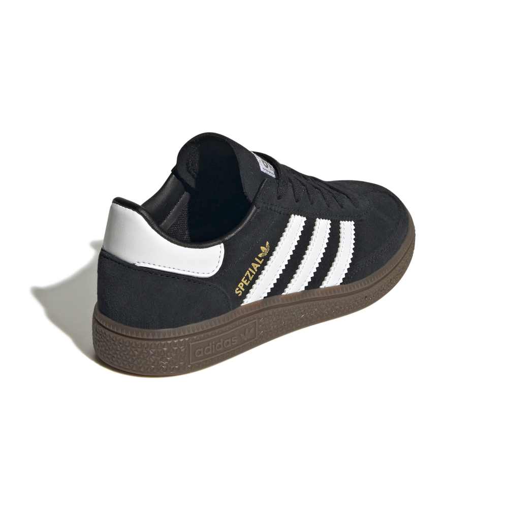 - From blacktop to sidewalk, kids need shoes that can keep up. The adidas Handball Spezial is built for kids on the move. Scaled down for growing feet, these retro-inspired shoes bring big style in a small package. Their suede upper and gum rubber sole provide toughness from top to bottom, with grippy traction for all their running and playing. Serrated 3-Stripes, a double-stitched T-toe and classic Spezial branding finish off the look.