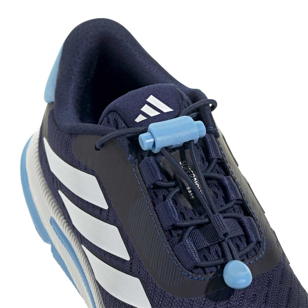 • For kids who are raring to go and ready to explore the world around them, these kids' adidas running shoes give them a comfortable ride through their day. Running or walking, a plush midsole adds soft support to every stride. And the rubber outsole grips the ground for confident running.