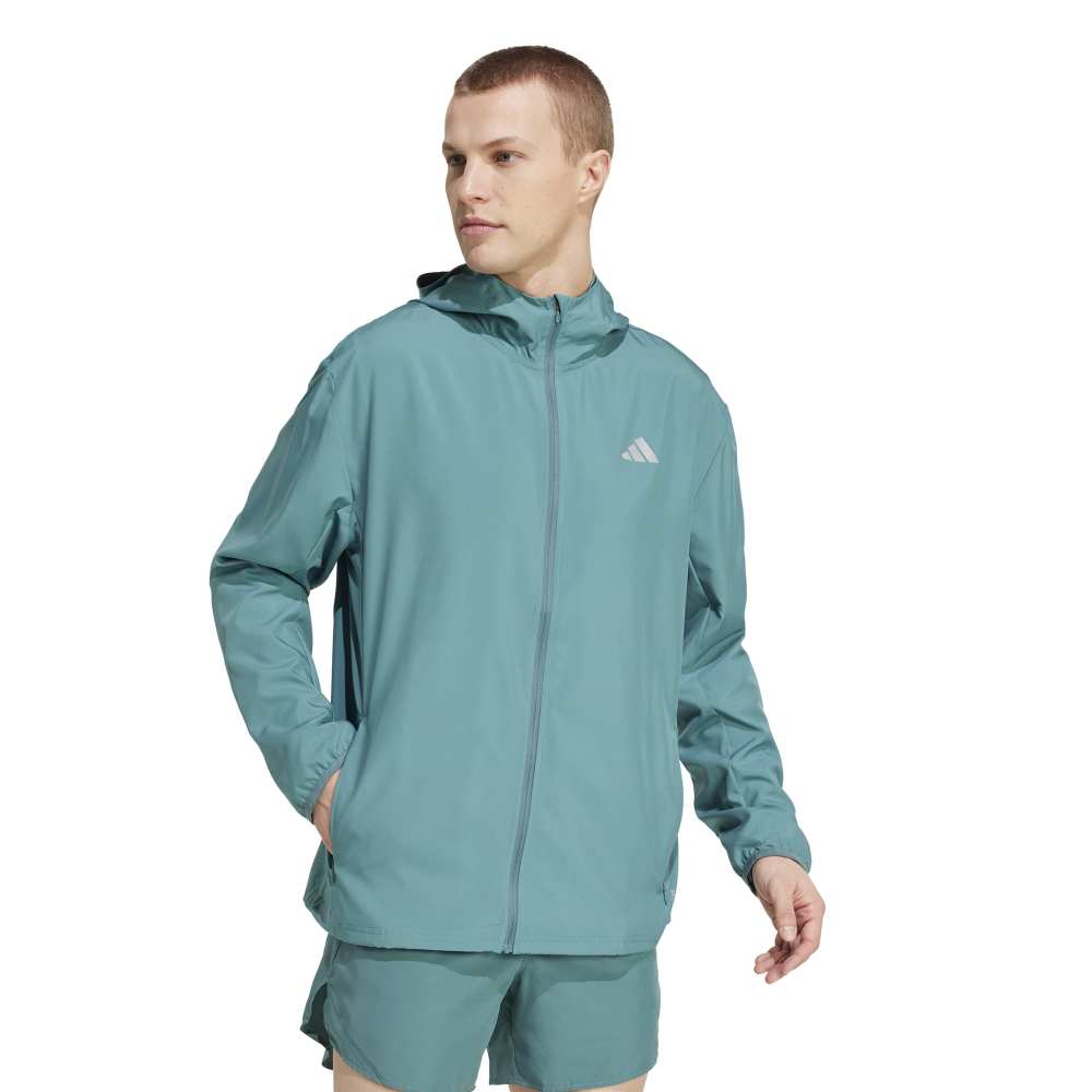 • Meet the Run It Jacket - a man's best mate for those invigorating runs. Made in part with recycled materials, this woven jacket is a testament to adidas' commitment to sustainability. Equipped with Aeroready technology, it absorbs moisture to keep you dry and ready for any weather. Reflective logos ensure visibility while the adjustable hood and concealed zip pockets add practicality. Regular fit ensures comfort, making this jacket an essential part of your running gear.