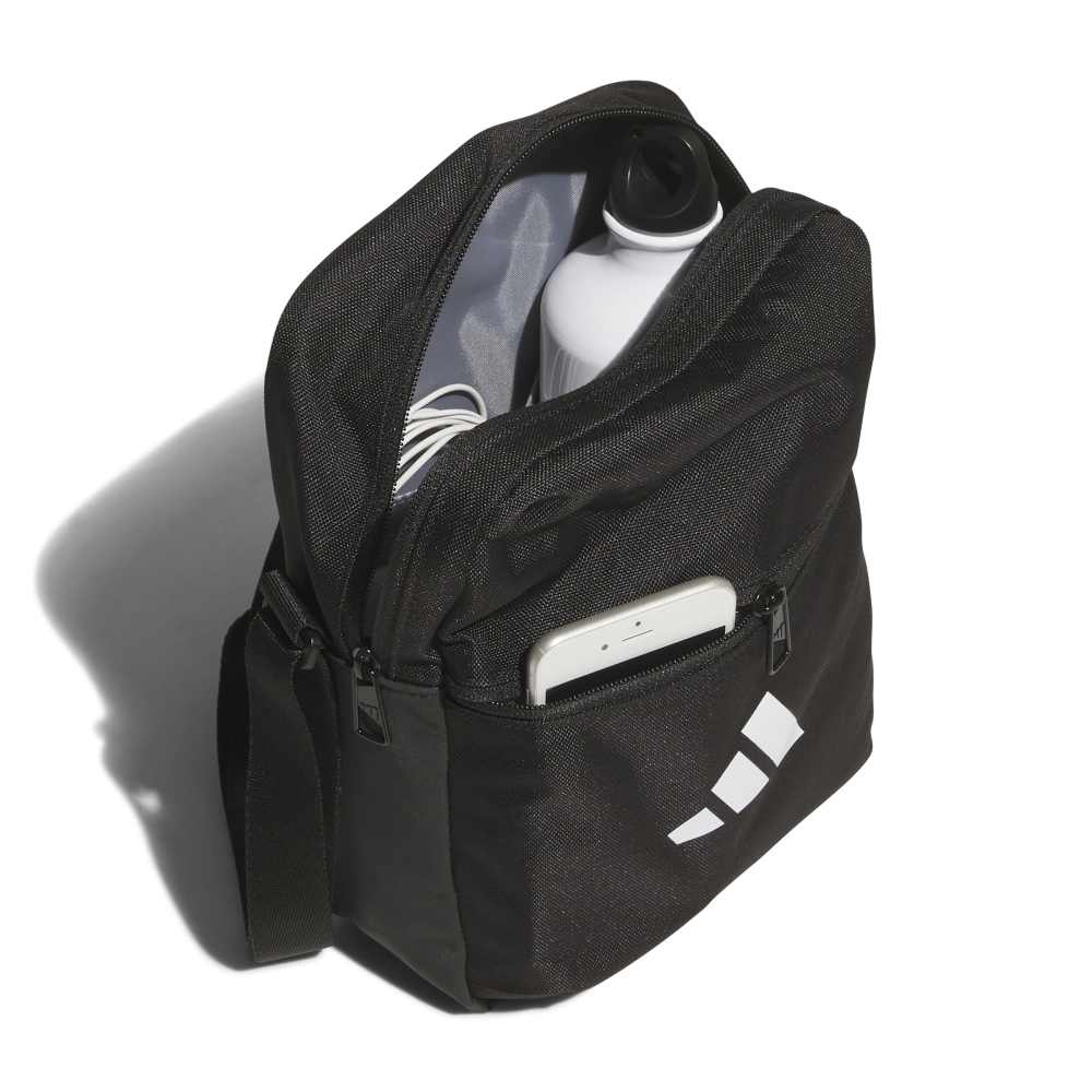 - Meet the Essentials Organizer, the unisex shoulder bag designed for adults who need practicality with a touch of style. Crafted entirely from recycled polyester, this medium-sized enamel bag is a staple for school, club activities, and more. Its authentic design is enhanced by reflective trim on the front, boosting visibility at night.