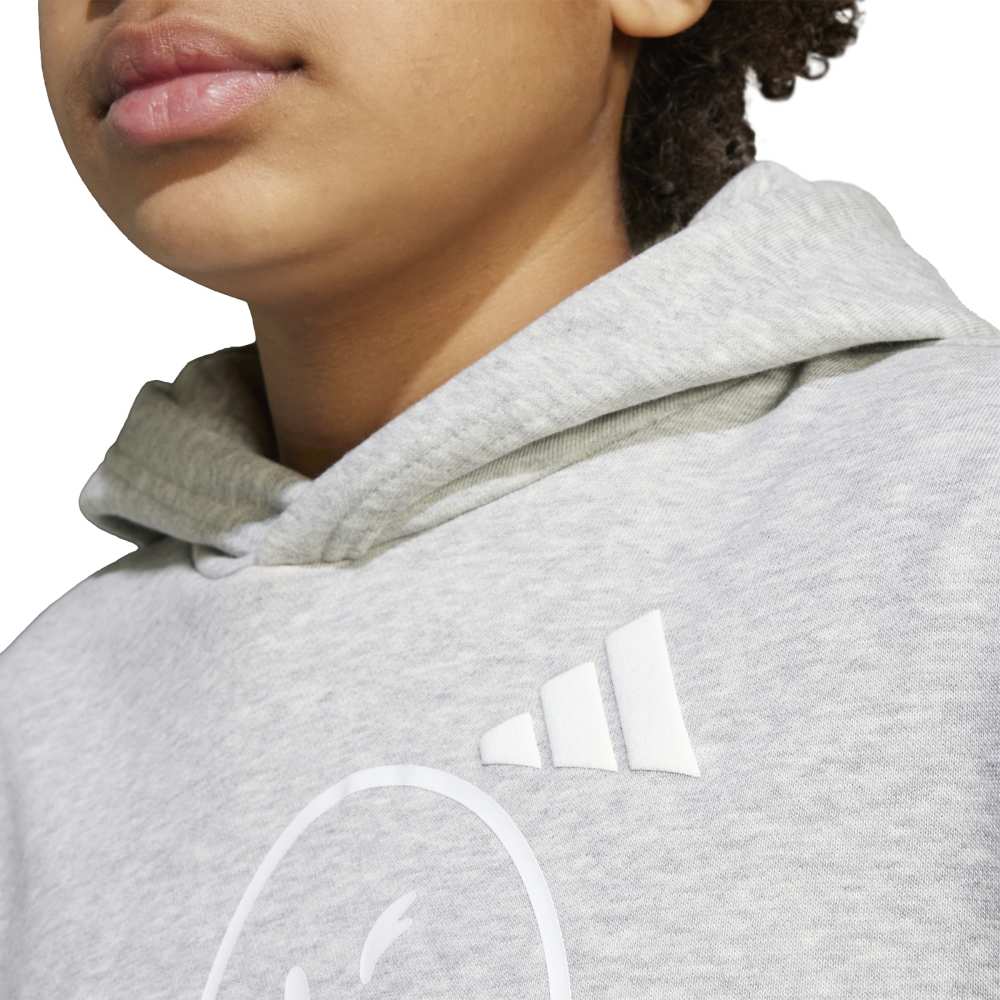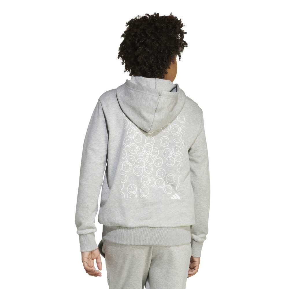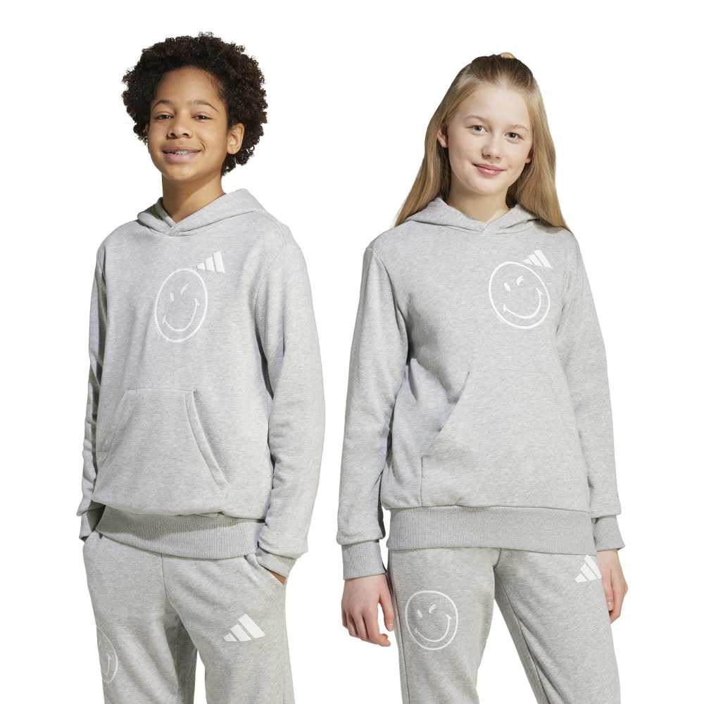 • Inject a dose of joy into your junior's wardrobe with the adidas x SmileyWorld Hoodie. This loose-fitting hooded sweatshirt, crafted from a blend of cotton, recycled polyester, and viscose, is designed to celebrate happiness with unique and exciting prints. Featuring a haptical smiley back print and the iconic 3 bar logo alongside the SmileyWorld signoff, this hoodie combines comfort with a playful twist. Made in part with recycled and renewable materials, it’s a cheerful addition to any young trendsetter's collection.