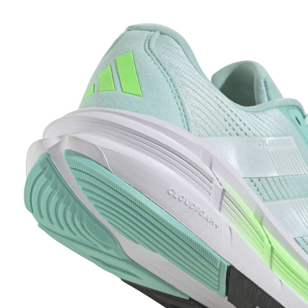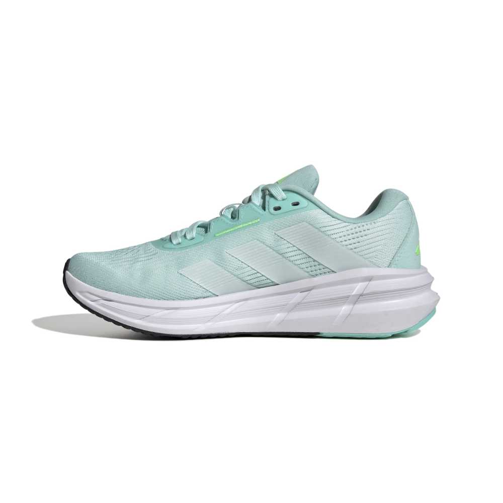 • Embrace the distance with the women's Questar 3 running shoes. Designed for those who crave protective and supportive footwear, these shoes feature a textile and synthetic upper for durability and comfort. The full-length Bounce 2.0 midsole offers maximum cushioning and energy return, ensuring every step is a leap forward. Engineered mesh provides breathability while the rubber outsole ensures traction on any surface. Made in part with recycled materials, these lace-up shoes not only boost performance but also contribute to sustainability. Perfect for those ready to push their boundaries to the next level.