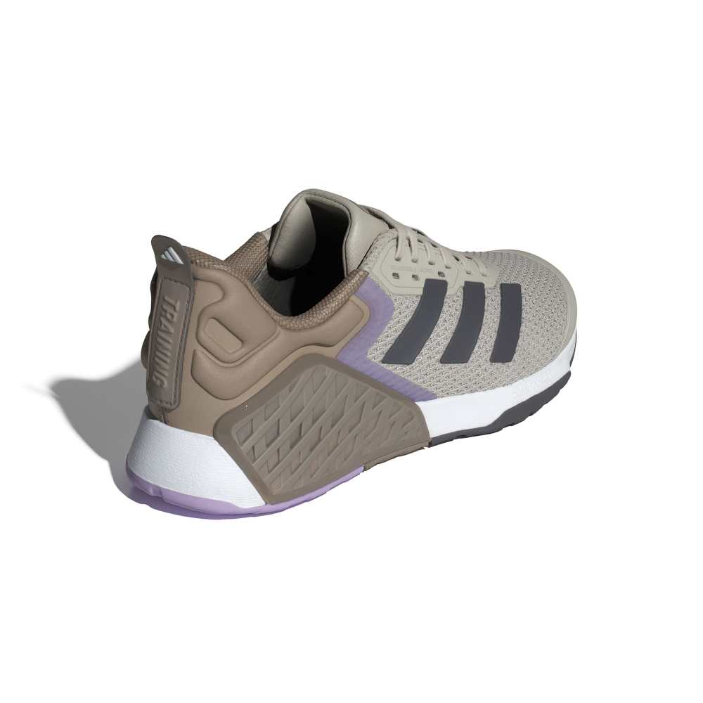 • Meet the Dropset 3 W, a training shoe designed for women who aim to become stronger and healthier. Crafted with a wide fit for strength training, these shoes are made from textile and rubber materials, ensuring durability and comfort. The dual-density midsole is stiffer in the heel and softer in the forefoot, providing stability and support during workouts. The Heat.Rdy technology keeps you cool while Traxion offers optimal traction. Made in part with recycled materials, these shoes not only enhance performance but also contribute to sustainability. Lace up and achieve your goals with Dropset 3 W.