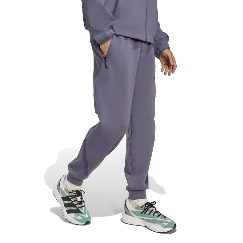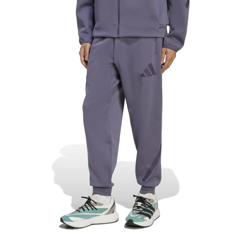 • Experience the feeling of zero negative energy with the Z.N.E. Pant for men. Made from a blend of 57% recycled Polyethylene Terephthalate and 43% cotton, these regular fit pants are designed to inspire camaraderie, connection and community in every day life. The matte rubber print three bar logo adds a touch of style while the sustainable 330G Primeknit spacer fabric offers a soft handfeel & technical aesthetic. These pants are made with recycled and renewable materials for an eco-friendly choice that doesn't compromise on comfort or style.
