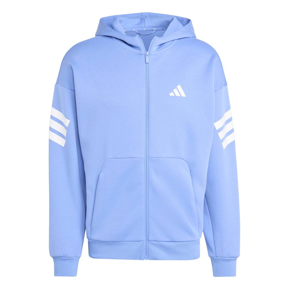 - Introducing the Future Icons Three Stripes Full-Zip Hoodie, a modern expression of adidas' timeless design. This regular fit, hooded track top, made in part with recycled materials, is a testament to our commitment to sustainability. Crafted from a blend of 67% recycled Polyethylene Terephthalate and 33% Better Cotton, it features bold, short, angled 3 stripes. This premium fabric hoodie is an embodiment of modern branding, designed to let you express yourself in comfort and style.