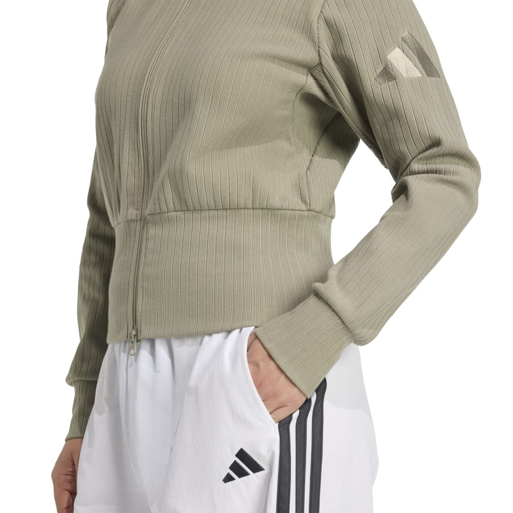 • Introducing the All SZN Winterized Full Zip track top, designed for women who seek comfort and style in their everyday wear. Made from 93% cotton and 7% elastane, this knit track top offers a regular fit with a stand-up collar, set-in sleeves with underarm gussets, and a slit at the hip for added mobility. The tonal embroidered sportswear logo and ALL SZN lettering add a subtle touch of elegance, while the 500g rib fabric ensures durability and warmth. Perfect for leisure, to and from sports, this versatile piece is your go-to for every season.
