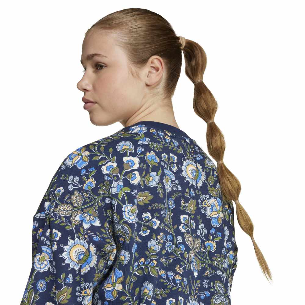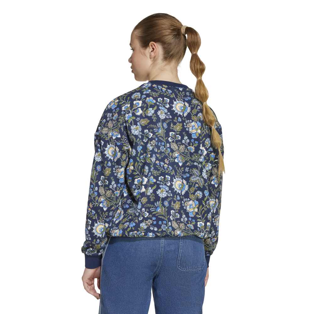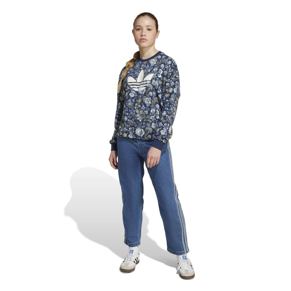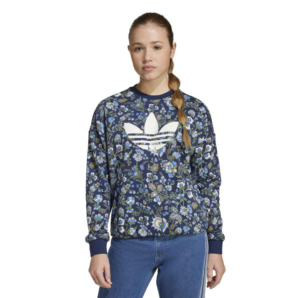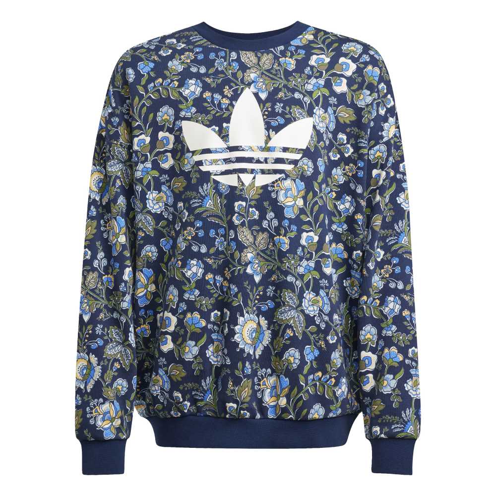 - Introducing the adidas Liberty Crew, a vibrant and artistic sweatshirt for juniors. This loose-fit, long-sleeve knit is a collaboration with Liberty London, renowned for its heritage and craftsmanship since 1875. Featuring a printed Trefoil logo, the design showcases detailed patterns of swirling leaves and flowers, inspired by archival prints and Indian chintz-style florals. Made with cotton and recycled polyester, it combines comfort with a versatile design.