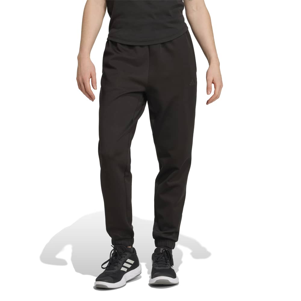 - Inhale. Exhale. Embrace your yoga practice with the Yoga Essentials Pant with cuffs. These super-soft, regular-fit pants are crafted from a blend of recycled polyester, cotton, and elastane, ensuring both comfort and versatility. The relaxed upper leg and tapered lower leg design provide a versatile look that's perfect for your yoga moments, whether you're warming up, in the flow, or cooling down. Featuring Climacool technology to wick away sweat and keep you cool and dry, these pants also come with side seam pockets for added convenience.