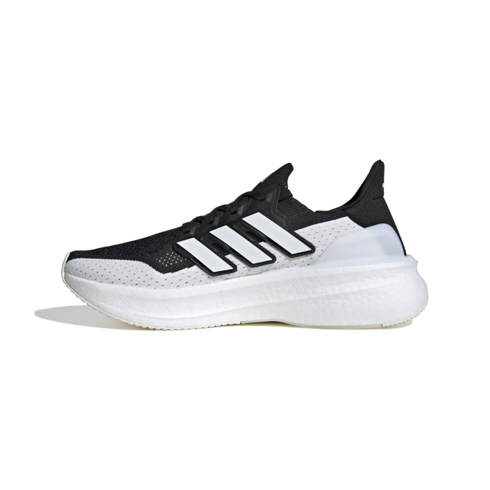 - Experience the thrill of an energised run with the Ultraboost 5 for men. Crafted for regular fit, these low shoes feature a blend of textile and synthetics in the upper, ensuring durability and comfort. The rubber outsole provides reliable traction, while the lace closure ensures a secure fit. Made in part with recycled materials, they demonstrate adidas' commitment to sustainability. The Light Boost technology offers a lightweight feel for next-level speed without compromising on responsiveness. Ideal for those seeking performance and style in their running gear.