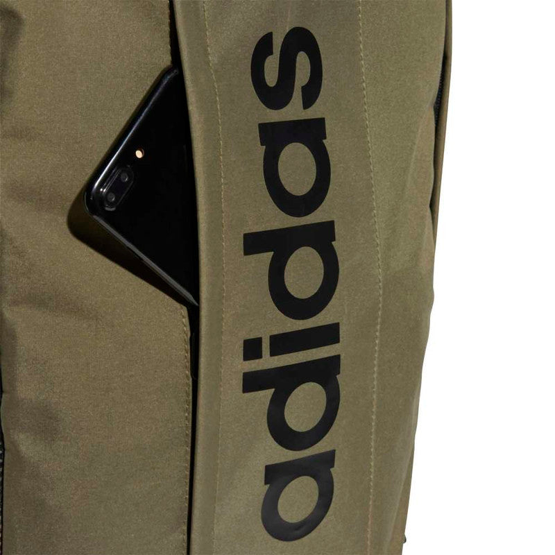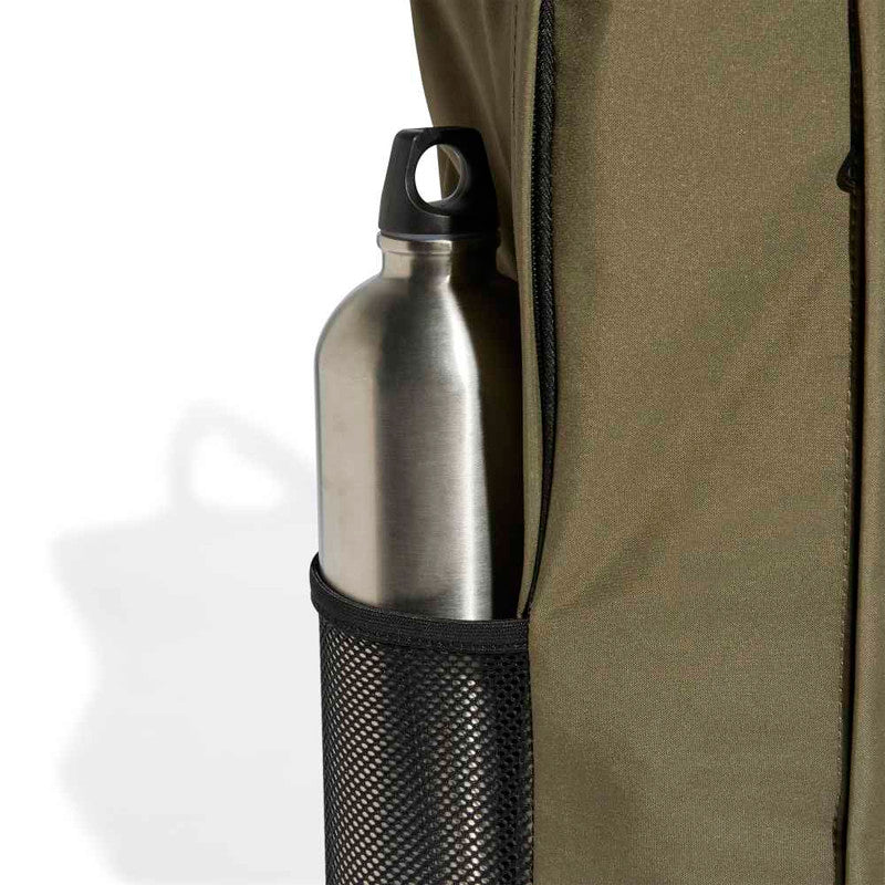 - No matter where the day takes you, this adidas backpack keeps your essentials organised and close at hand. Padded straps ensure carrying comfort. Slip-in pockets have room for a water bottle and compact umbrella, while a front zip pocket provides quick access to your keys and phone.