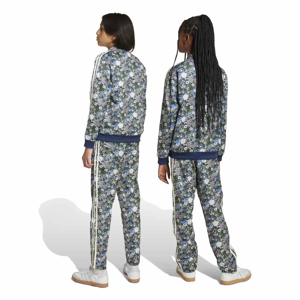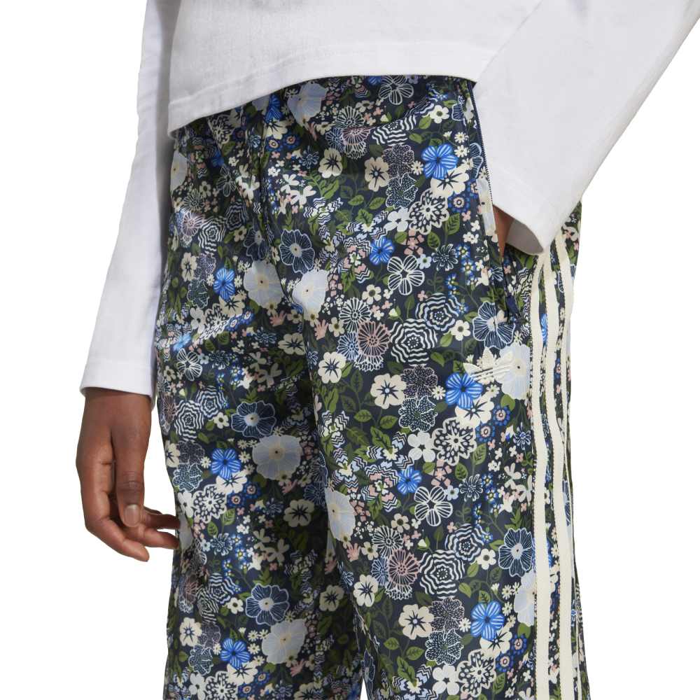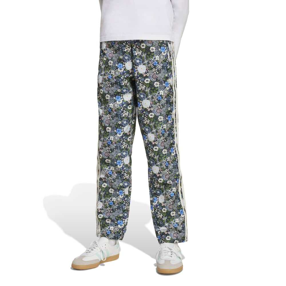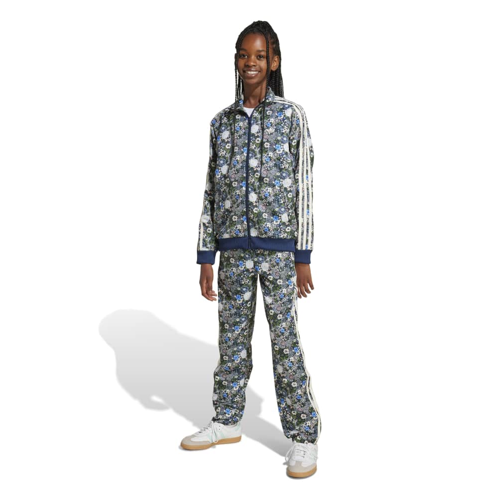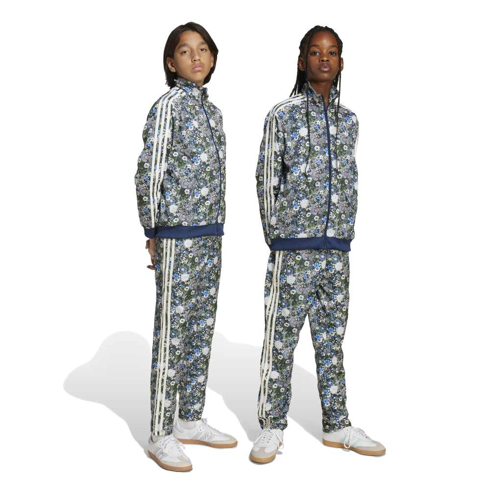 - Step into a world of artistic flair with the Firebird Adidas Liberty Track Pant for juniors. This collaboration with Liberty London showcases their famed vibrant, colourful, and floral prints, merging seamlessly with the iconic adidas Originals design. These regular-fit track pants feature a stylised floral pattern, a mid-rise waist, and practical zippered pockets. Perfect for everyday lifestyle, these pants bring together bold graphic flowers and small leaves in a playful print, celebrating heritage and craftsmanship.