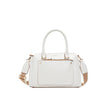 • Crisp white leather sharpens the silhouette of this structured satchel, trimmed in warm gold-tone hardware, with a premium vibe that elevates every desk-to-dinner moment and a detachable shoulder strap for easy, hands-free versatility. Carry it to the office with a blazer, or sling it over a sundress for weekend brunch, letting the clean lines finish the look.