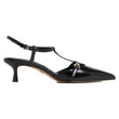 • A low-to-the-ground heel and T-strap silhouette makes this heel feel fresh, while tiny buckle details add a bit of edge.