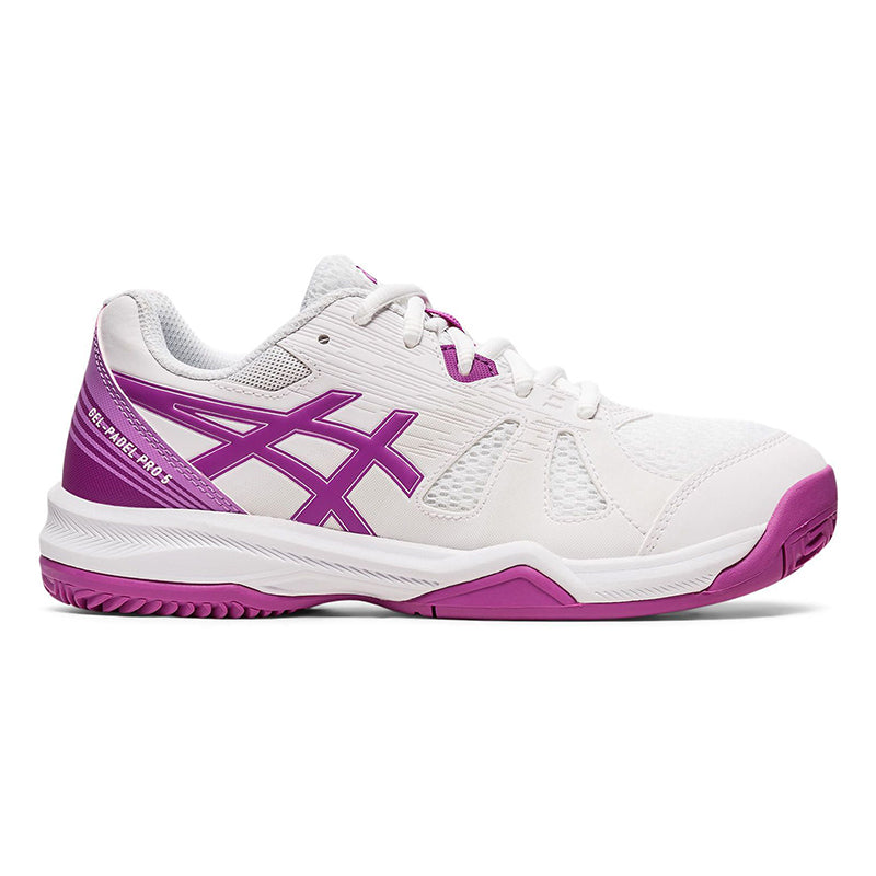 • The Asics Gel-Padel Pro 5 Gs Is A Versatile Padel Shoe For Young Players, Offering Support, Flexibility And Comfort. Paired With Synthetic Leather Overlays And Mesh Paneling On The Upper, The Shoe Offers Great Breathability And Support. Featuring Gel Technology In The Forefoot, The Shoe Provides Exceptional Cushioning And Shock Absorption. The Full Herringbone Pattern On The Outsole Provides Great Traction On Padel Courts.