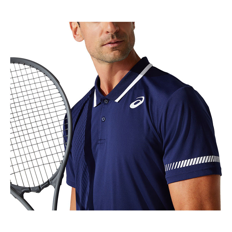 - The Court Polo Shirt Features A Knit Fabric Blend That'S Complemented With Excellent Moisture-Wicking Properties To Improve Comfort And Keep Athletes Dry On Court. Additionally, This Shirt Is Complemented With Mesh Panels On The Sides For Better Breathability While The Ribbed Collar Is Paired With A Button Application Below The Neck.