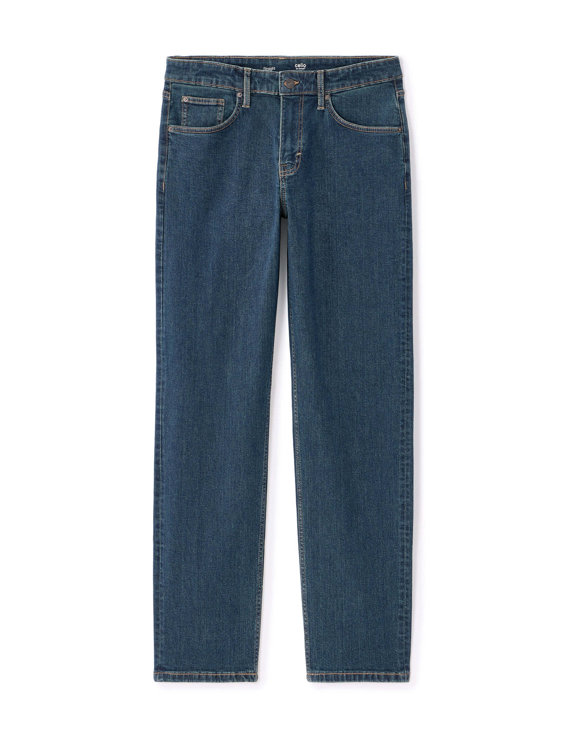 - A timeless and easy-to-wear pair of jeans for men for any occasion! - Straight jeans, regular fit- Rinse color- Stretch cotton- Zipper closure with button- Pair it with a shirt and sneakers for a casual look.