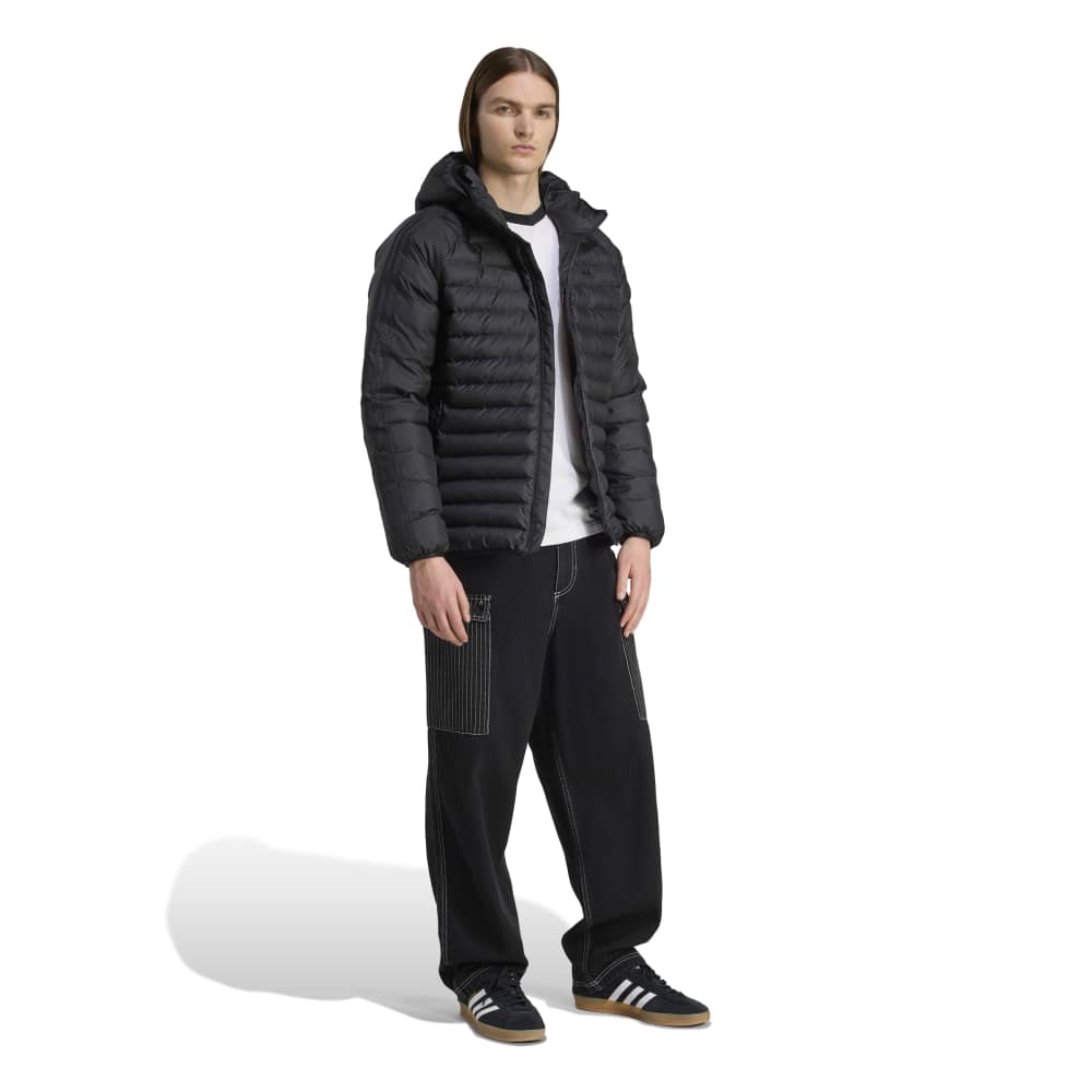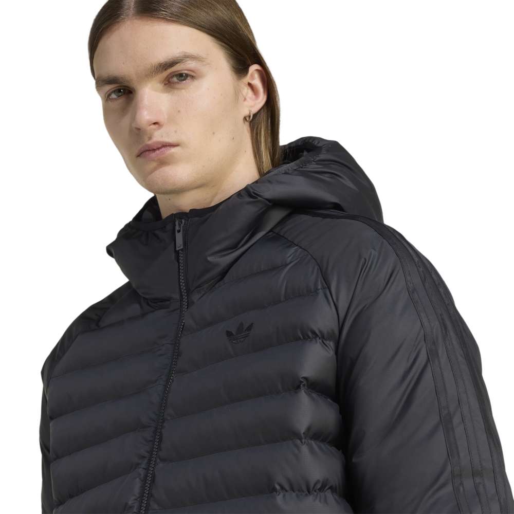 - Discover the intersection of sport, fashion and function with this man's Originals Padded Hooded Jacket. Slim-fitting and woven from 100% recycled polyester, it offers an eco-friendly choice without compromising on style or comfort. Perfect for braving the elements whilst looking effortlessly cool, it's a must-have addition to any wardrobe.