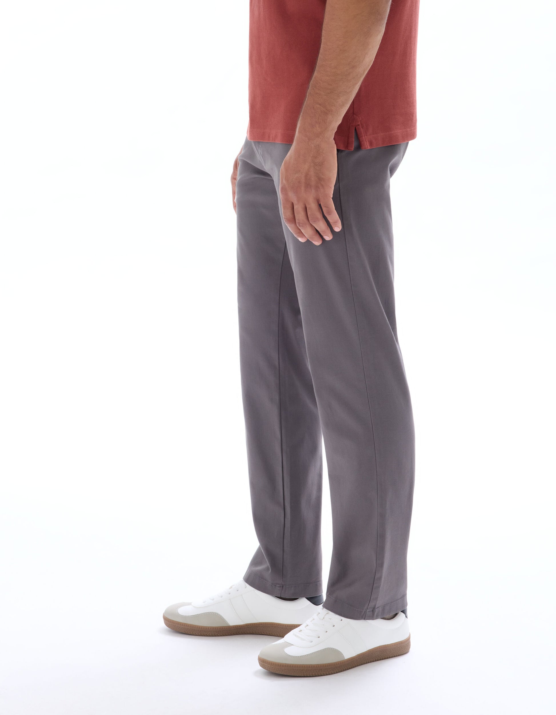 - Straight-fit chinos, made from stretch cotton fabric, sturdy and comfortable to follow you without hesitation.