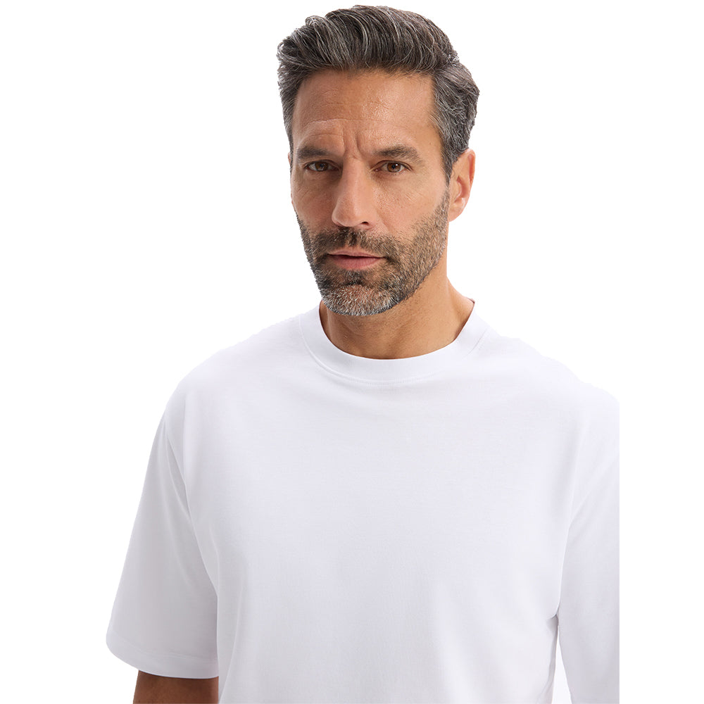 • Oversized fit and perfect fit. Flowing and pleasant material with a soft feel. A thick collar and longer sleeves. Refresh your look with this modern-cut white t-shirt, a must-have for the contemporary man.