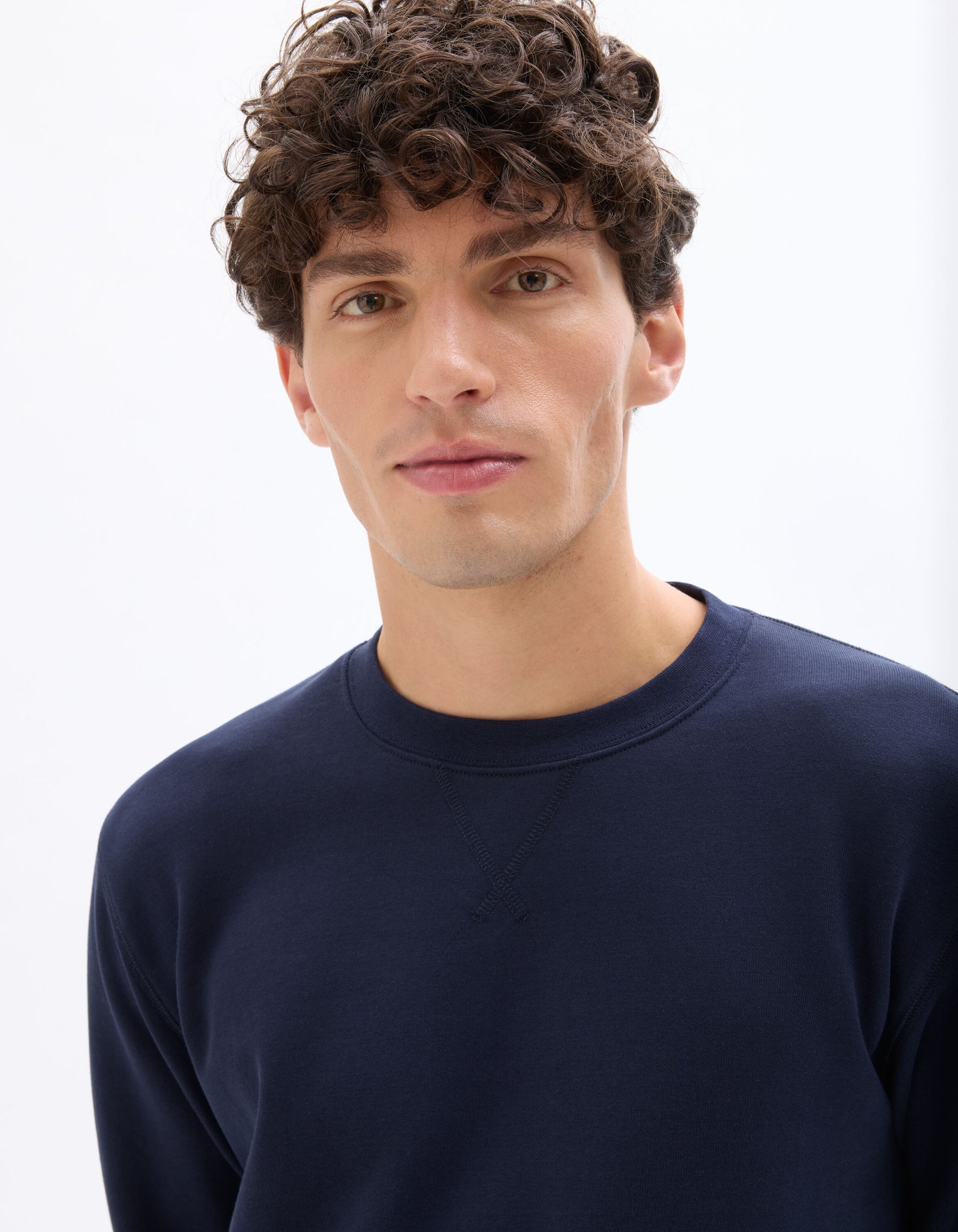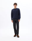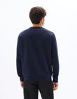 - *except for the heather grey color, which has 95% cotton and 5% polyester – it’s the secret to its marled effect.-An elegant sweater for men. Ideal for a casual and stylish look.- - Solid navy sweater- - Long sleeves- - Round neck- - Standard length- - Perfect with jeans or chinos- - Pair it with a jacket for an even bolder style.