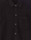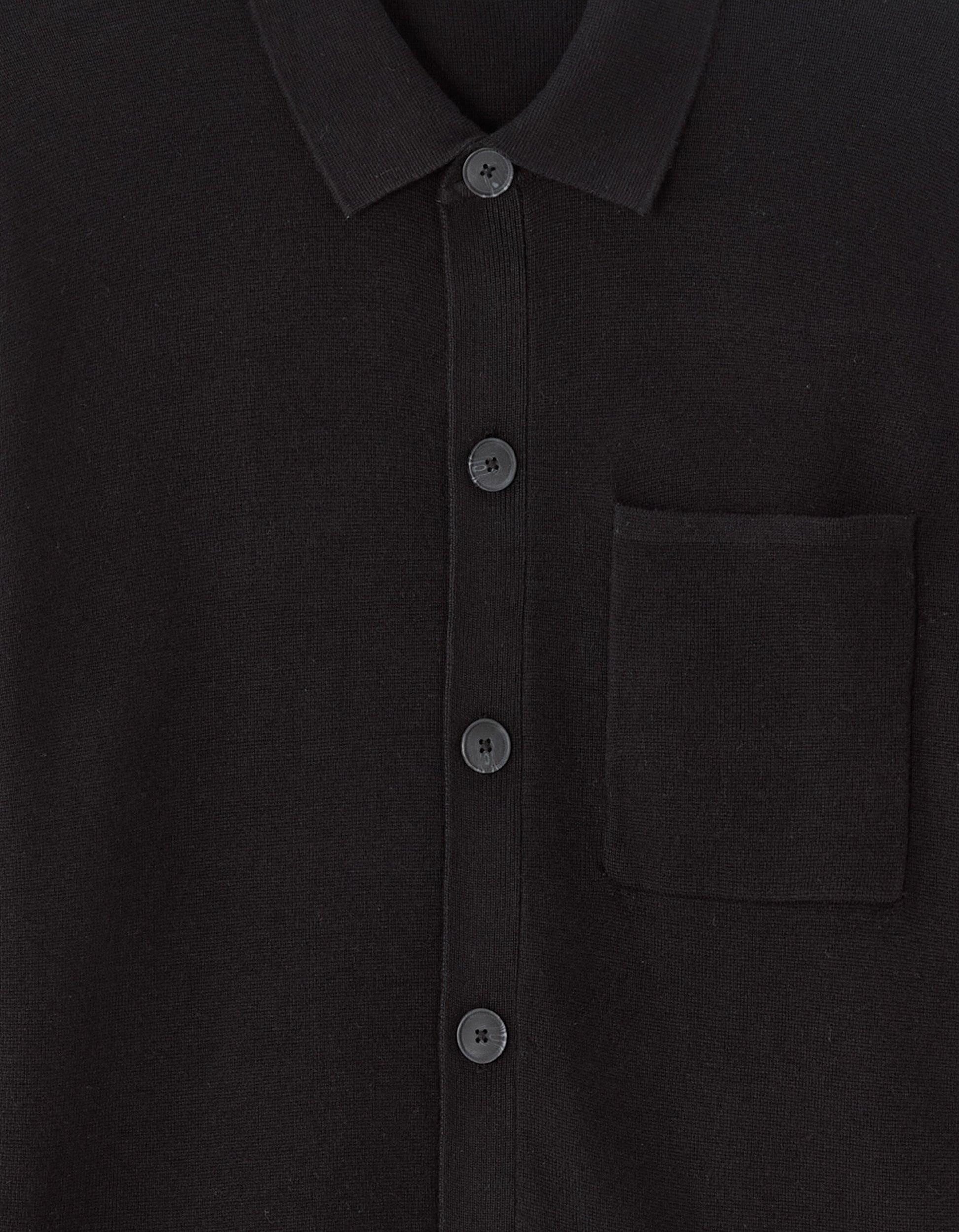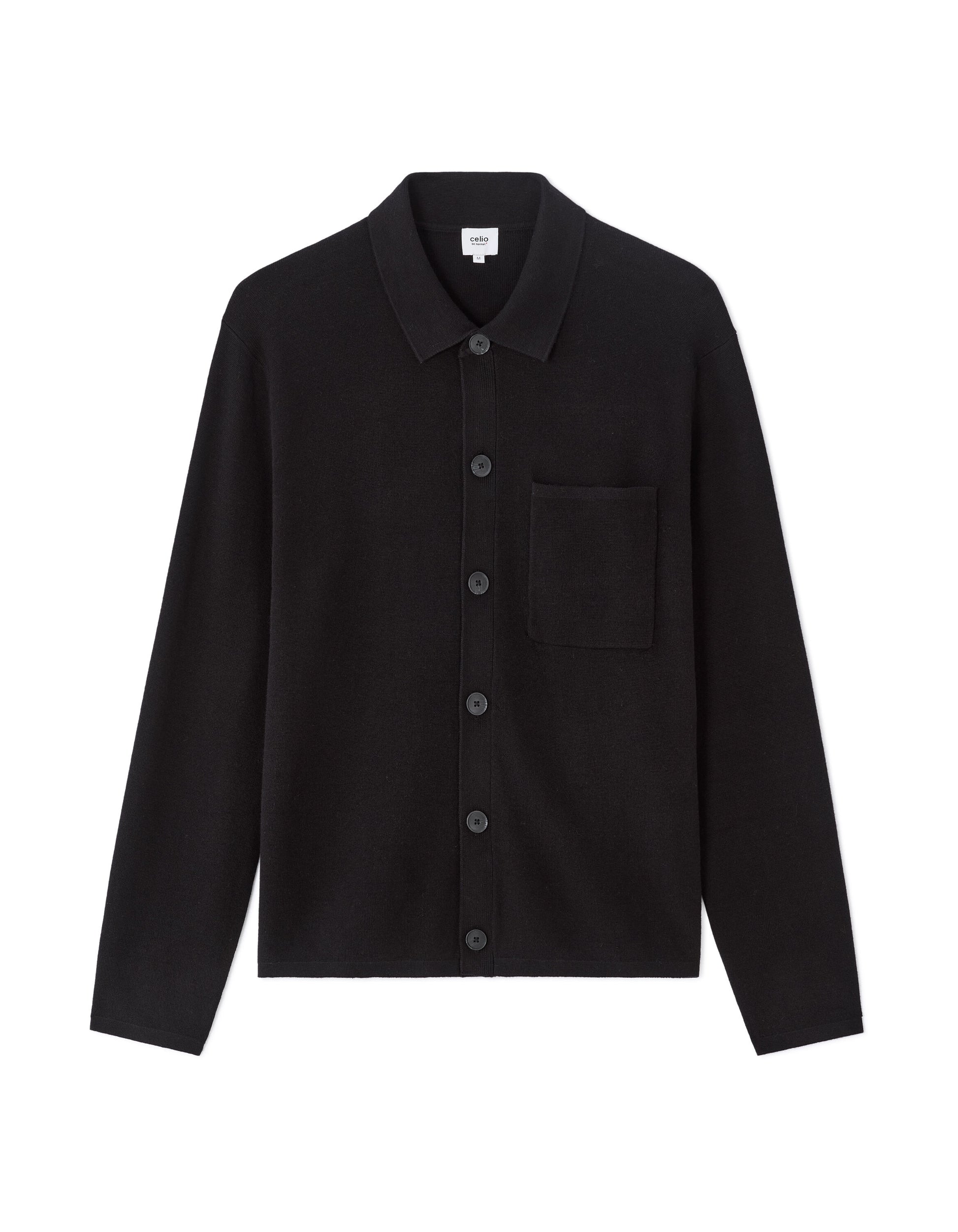 - The men's overshirt, a versatile piece that combines style and warmth thanks to its dense knitting.- Black plain knit overshirt- Long sleeves- Shirt collar- Button closure- Regular fit- Dense touch- Ideal for layering over a T-shirt for a casual outfit.