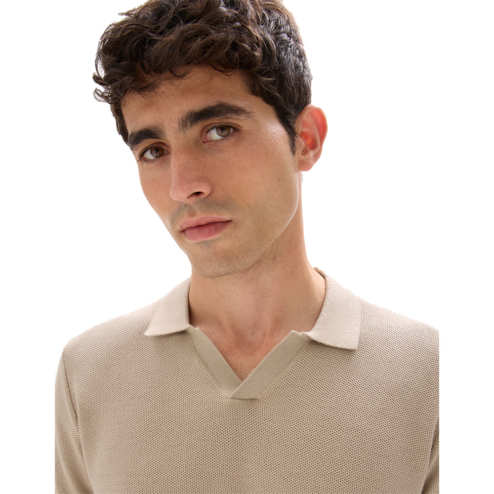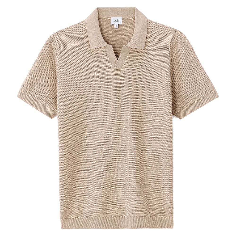 - Explore exceptional comfort for men with this textured knit polo shirt. Made from 100% cotton, it offers a clean and versatile style for your days.