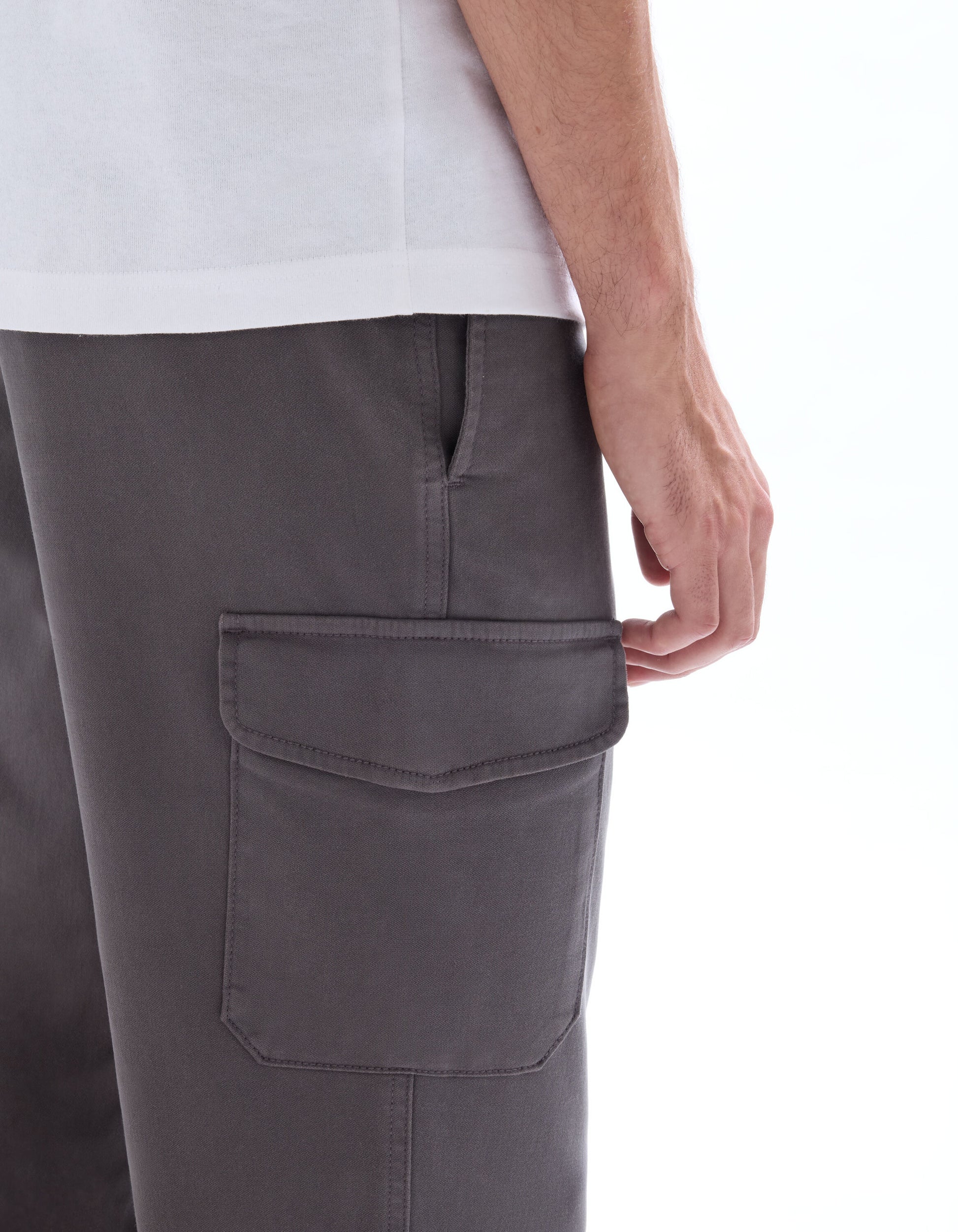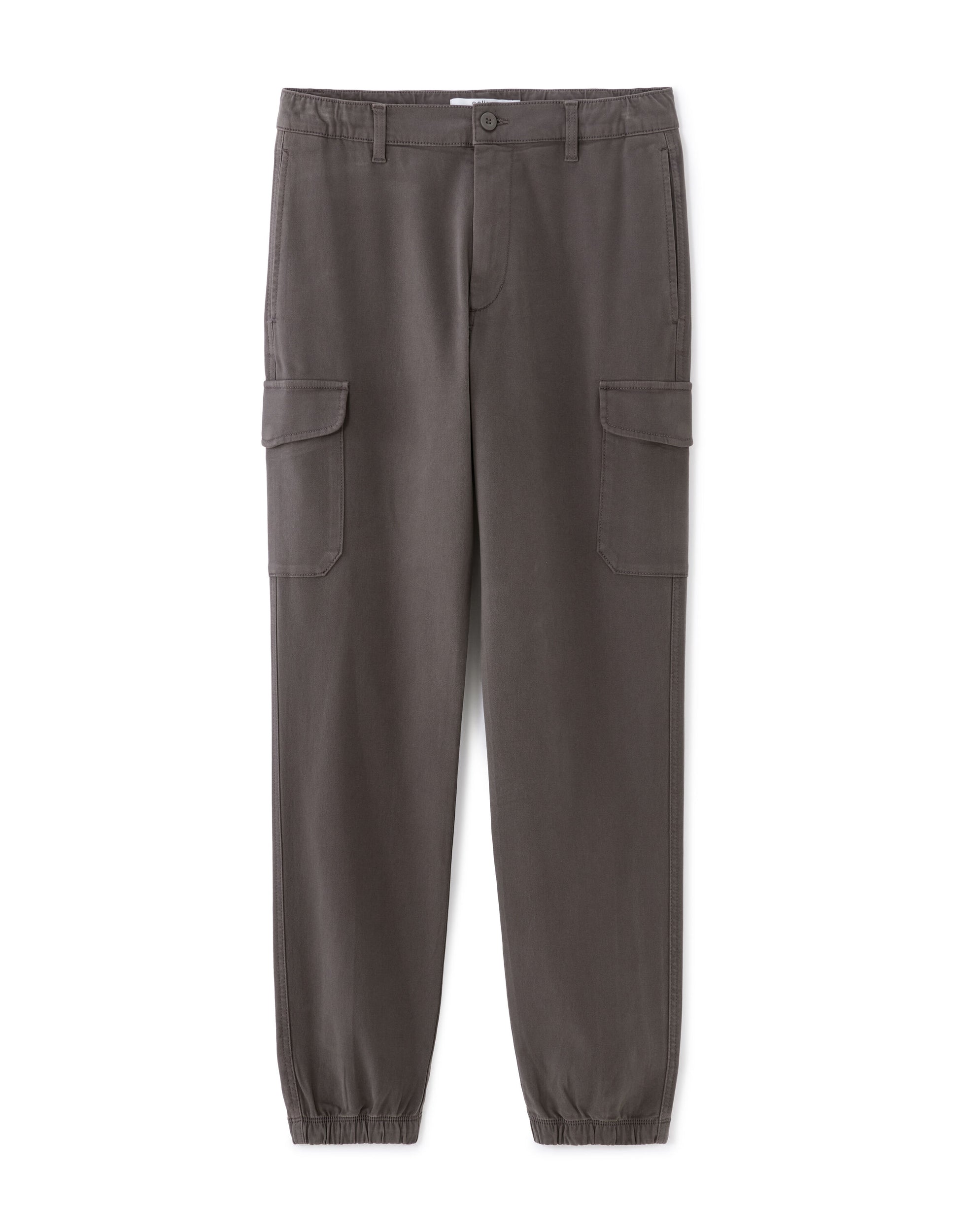 • Adopt a trendy utilitarian style with these gray cargo pants, perfect for a casual everyday look. - Gray cargo pants- Straight cut- Stretch cotton- Zipper fly with button- Print type: Solid- Flapped side cargo pockets- Elasticized waist and cuffs- Pair these pants with a basic t-shirt and sneakers for an ideal casual look.