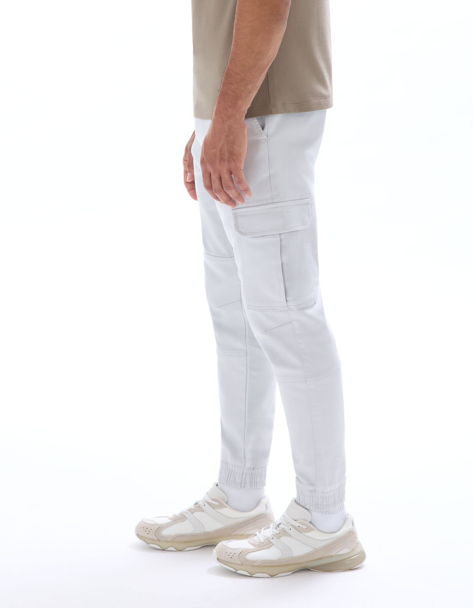 • Fitted cargo pants, practical and comfortable. Tightened hems, well-placed pockets for those who never leave their hands empty.