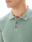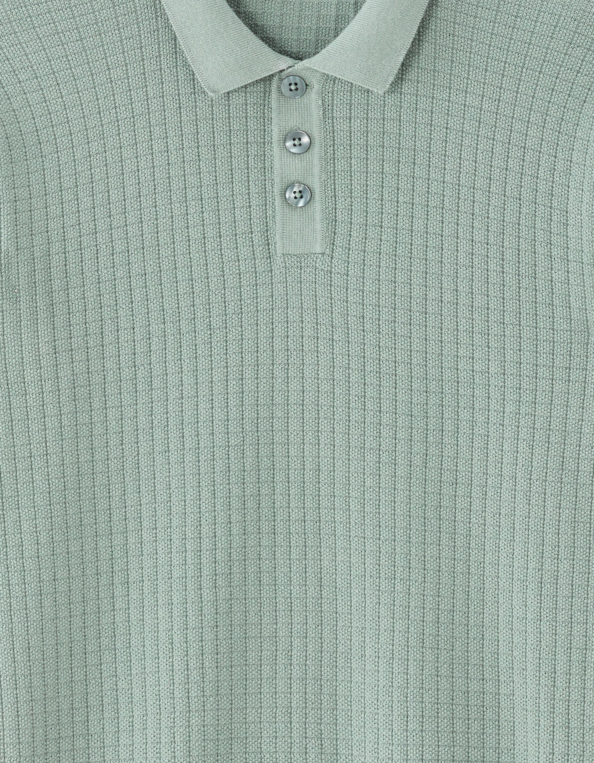 - Textured elegance for the modern man: this long-sleeve polo combines refinement and casualness for an impeccable style on any occasion.- Light blue fancy knit sweater- Long sleeves- Polo collar- Soft and comfortable touch- Fancy stitch- Regular fit- Ideal with chinos or straight pants to complete your outfit.