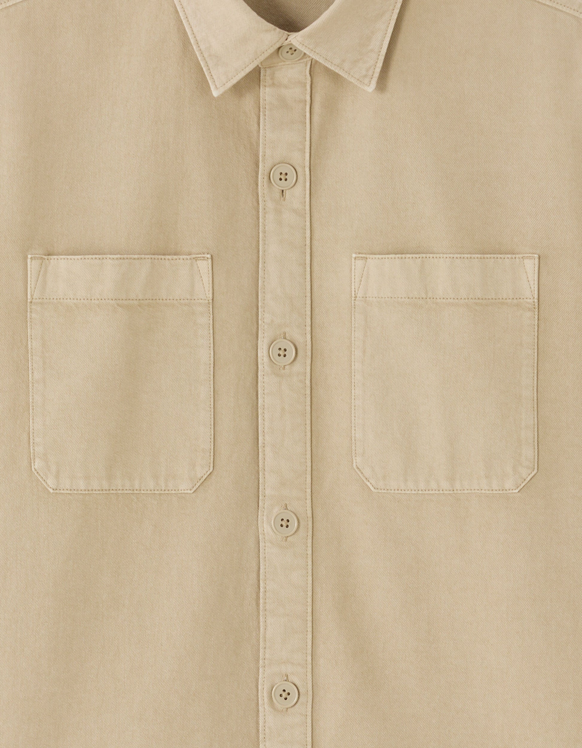 • For the modern man, discover this thick overshirt. Its casual style dyed in piece adds a unique touch.- Thick beige overshirt- Overshirt cut- Made of 100% Cotton- Long sleeves- French collar- Patch pockets- To be paired with jeans or chinos for a complete look.