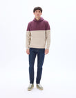 - Adopt a casual look with this men's sweatshirt. Perfect for everyday wear.- Burgundy color block sweatshirt- Made from blended cotton- Kangaroo pocket- Soft touch- Hood-Pair it easily with chinos or joggers.