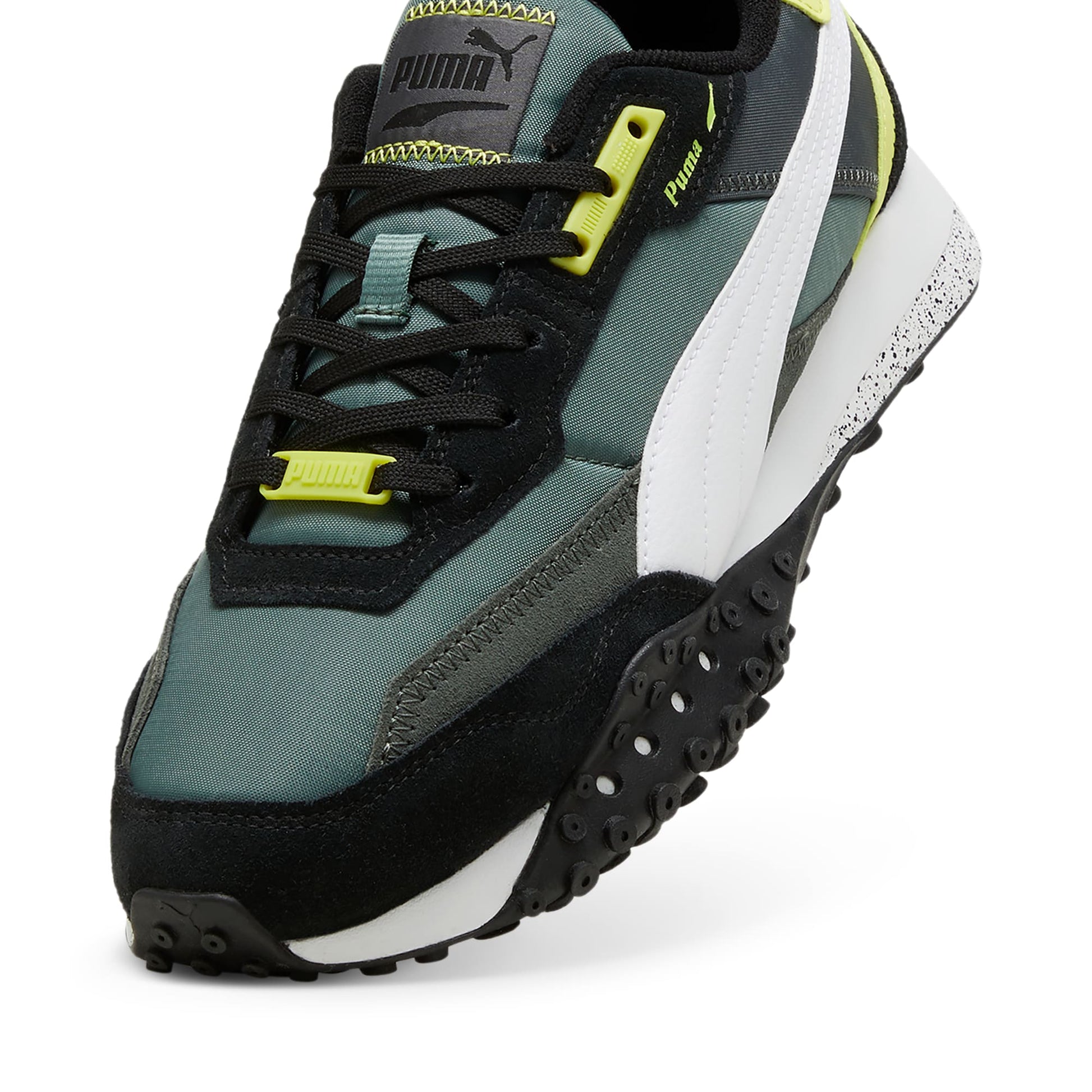 - Meet the newest member of the PUMA Rider family, the Blktop Rider, in which heritage colours and materials meet modern design elements in this classic, yet new, silhouette. This '80s era sneaker features an upper with a nylon base and suede overlays for a clean look.