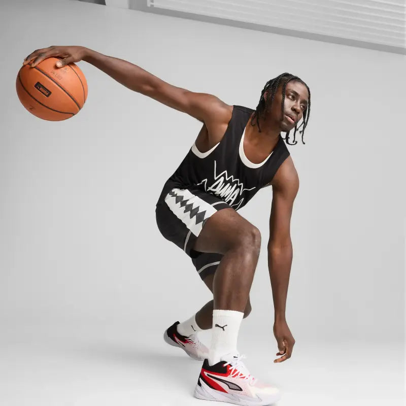 Make your mark on or off the court in these relaxed-fit shorts. They feature moisture-wicking tech to keep you cool, a comfortable drawstring waist and bold jaws print down the sides.