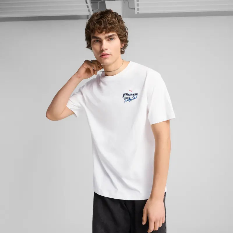 Rev up your style with this tee, featuring dynamic semi-rubber graphics on the chest and back. Perfect for making a statement, it blends sporty vibes with everyday ease. Embrace your boldness with PUMA's signature touch.