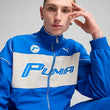 Step up your game with this PUMA track jacket. Featuring bold graphics, secure zipper pockets, and elastic cuffs, it's designed for those who love to make a statement. Feel the energy, embrace the vibe, and own your look.