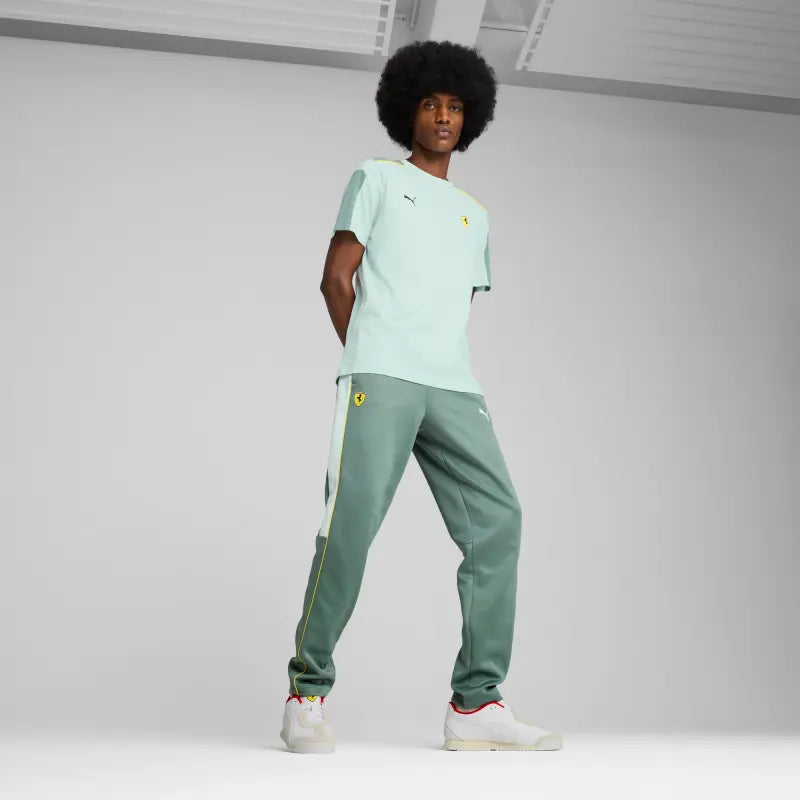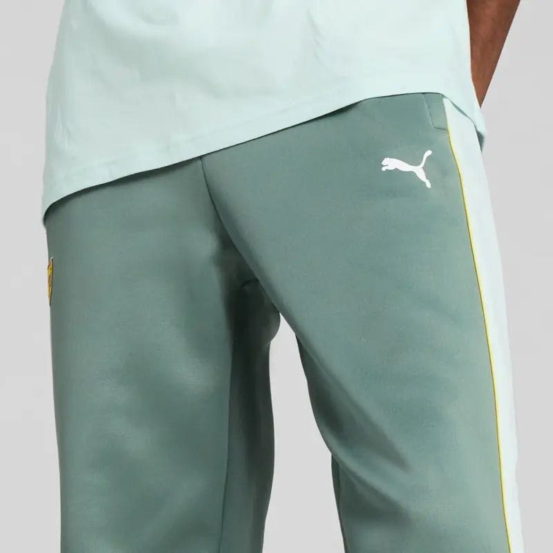 Rev up your style with PUMA and Scuderia Ferrari. These track pants feature colored side panels, piping details, and iconic logos. The elasticated waistband with internal drawcords ensures a perfect fit. Get ready to race through life with confidence and flair.