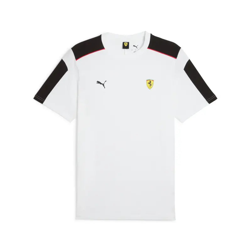 Join the Scuderia Ferrari team with this tee featuring colored panels and a regular fit. Show off the iconic Ferrari shield and PUMA Cat logo on the front, and embrace a blend of tradition and innovation in your wardrobe.