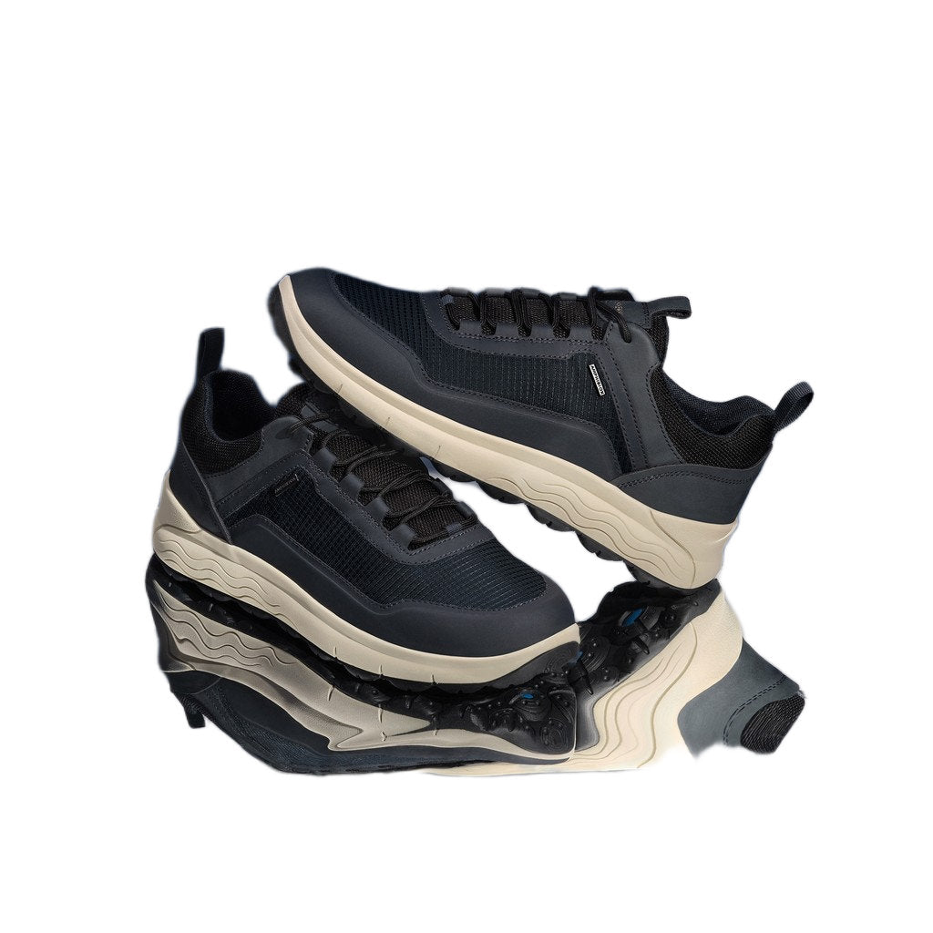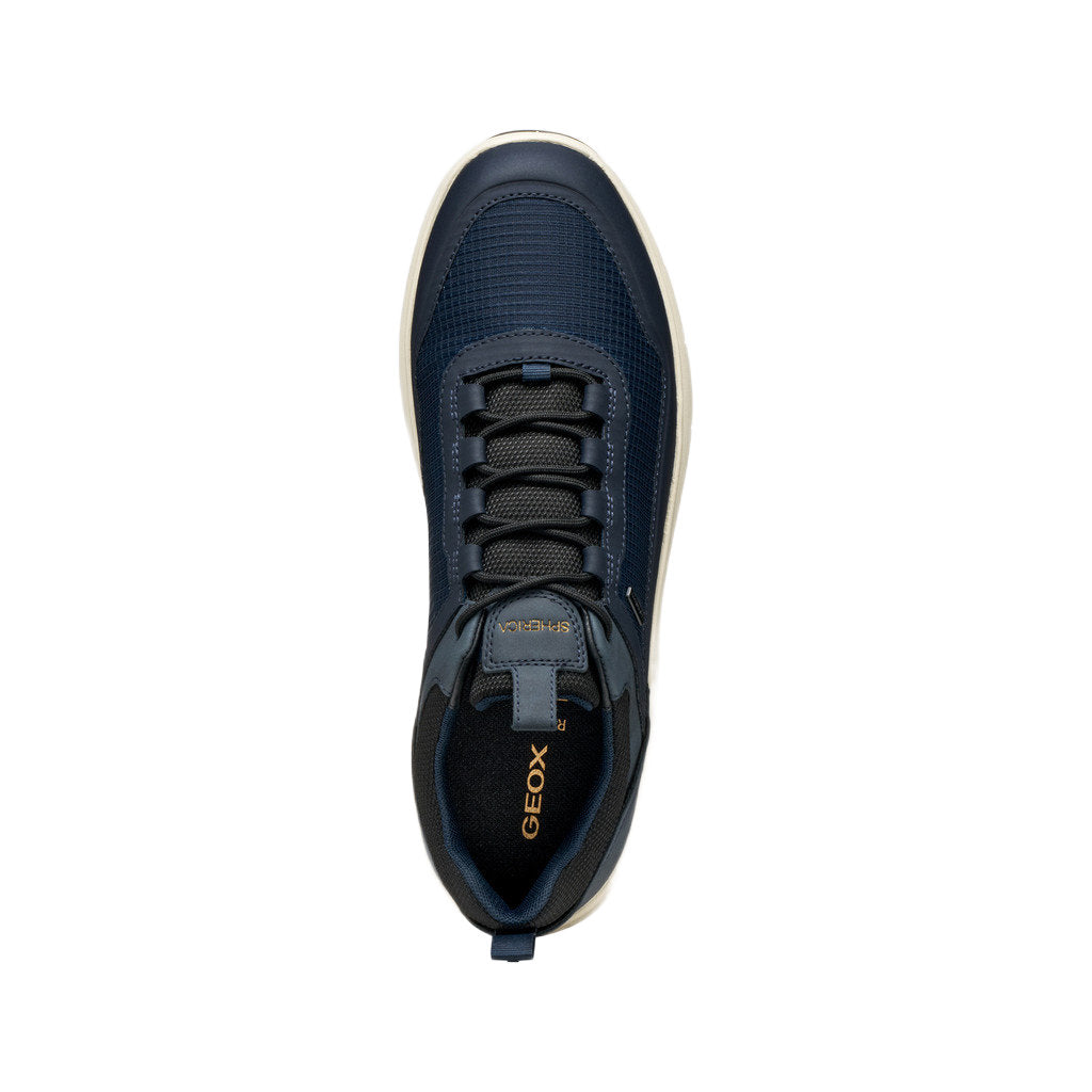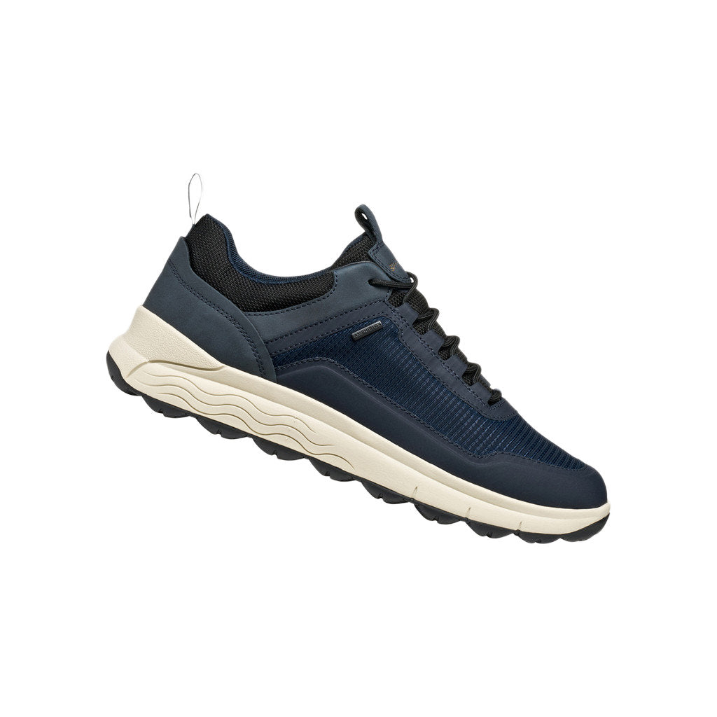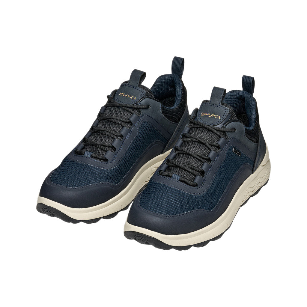 - Waterproof breathable sneaker for men with a design that guarantees comfort, even when it rains. This version boasts a contemporary-looking fabric upper in a modern navy-blue palette with TPU thermoplastic details. Spherica™ 4X4 ABX offers exceptional cushioning and is the perfect way to take on city living with confidence, even when the weather is poor.