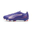 How fast is ULTRA 5 PLAY? Fasten your seatbelt. Perfect for those who are just starting to fall in love with the beautiful game, this version of ULTRA comes with PUMA's brand-new SPEEDSYSTEM outsole and FastTrax stud design for the most optimal traction. These boots have three rounded studs on the lateral side so you can switch between firm ground and artificial grass. Wherever you play, play at full throttle.