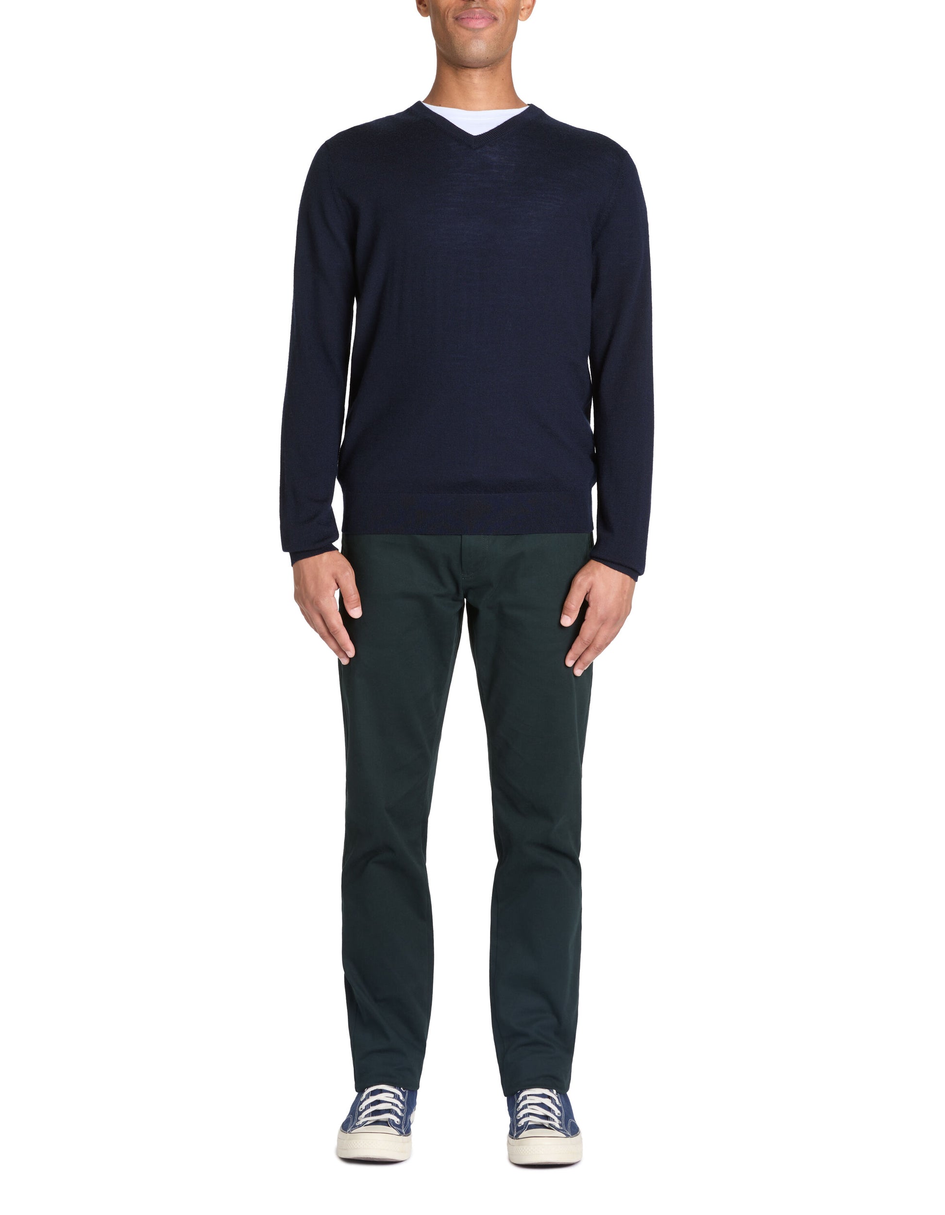 100% Merino Wool V-Neck Sweater - Navy