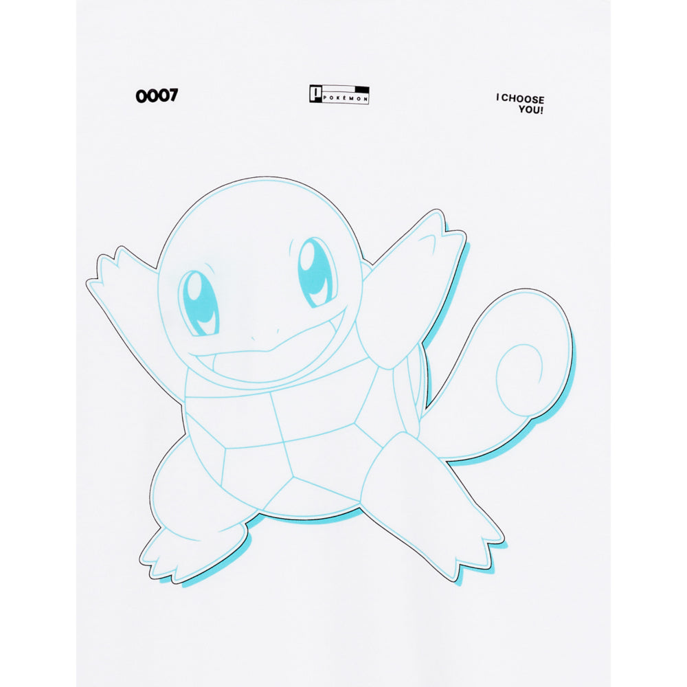- - Printed on the front on the chest and all over the back with Squirtle in the center and its number 0007