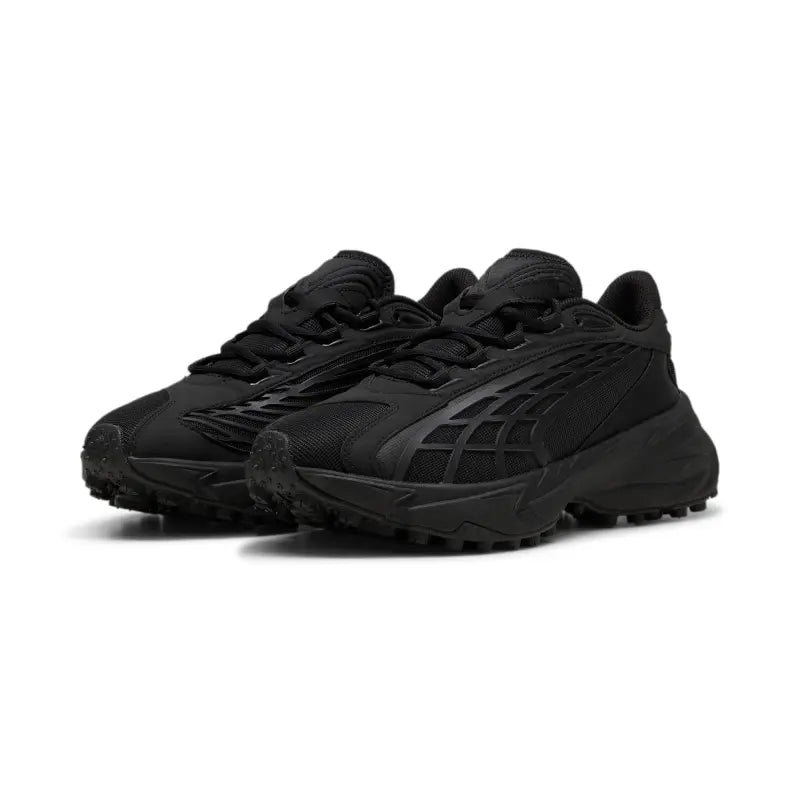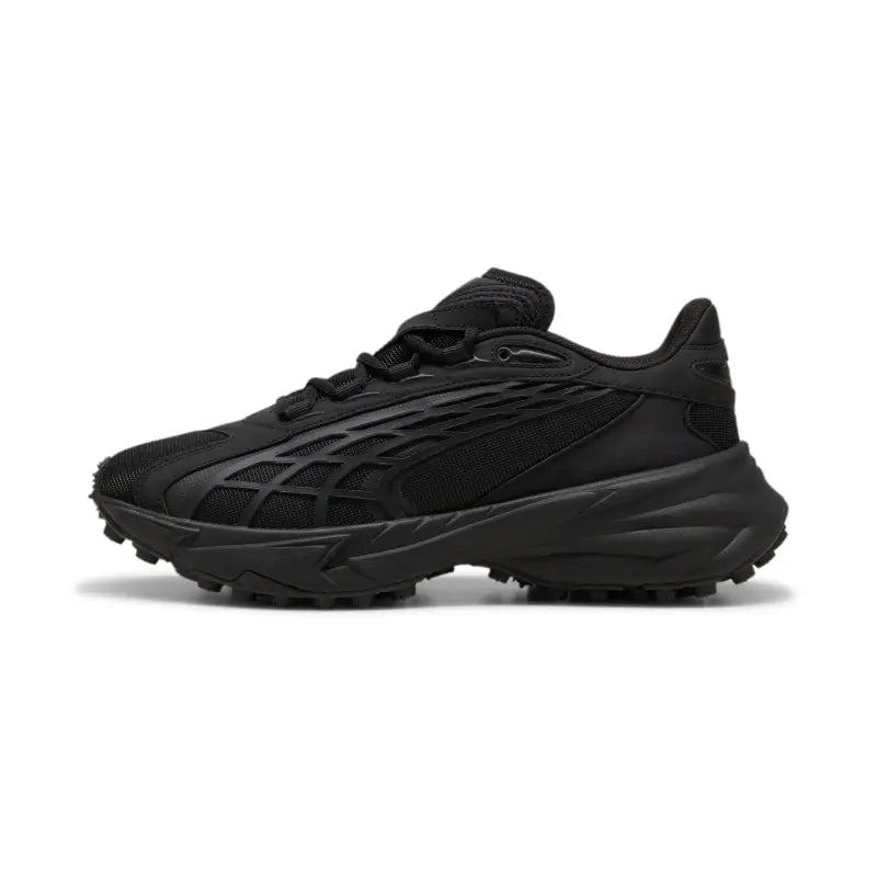Inspired by PUMA's Icons of Speed, the Spirex is a new sneaker made for bold streetwear choices. The outsole draws inspiration from runners' spikes, while the upper is a reinterpretation of PUMA's football and motorsport heritage. This design features a textile base with synthetic leather overlays.
