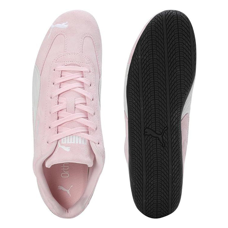 • An icon of racing culture, the PUMA Speedcat has been synonymous with speed, precision, and unparalleled performance for over 25 years. It originated as a fireproof Formula 1® footwear style, but over the decades it found itself on a new circuit – transcending the tracks of Monaco for the streets of global fashion capitals. Wrapped in soft suede and premium leather, this silhouette is reissued in its original red and black colorways with a new PUMA Cat Logo at the front.